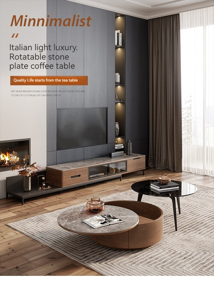 Installation method: Complete installation Popular elements: Master design Color classification: Walnut color rotating coffee table (rock surface) Walnut color coffee table combination solid wood color rotating coffee table (rock surface) Log color coffee table combination Log color: Telescopic TV cabinet (rock surface) #2110 Smoked black revolving coffee table (slate surface) Black coffee table combination black: retractable TV cabinet (slate surface) #2110 Wood color: coffee table combination + TV cabinet #2110 Black coffee table combination + TV cabinet #2110