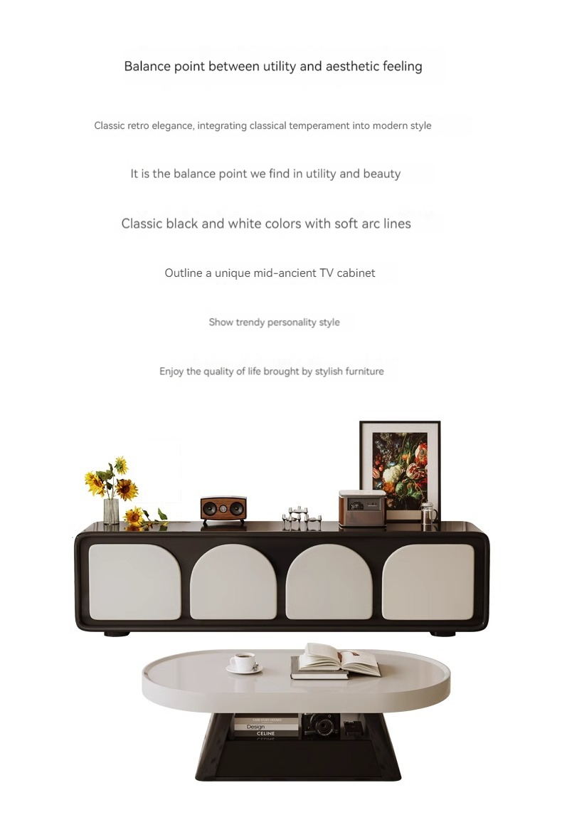 2m TV cab + table:[Black + beige] 2 meter TV cabinet + coffee table