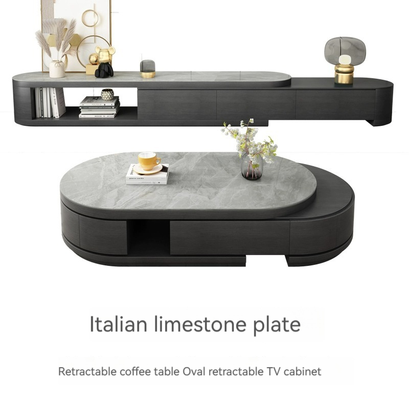 [grey] table+cab:【 Italian gray 】 Telescopic coffee table + TV cabinet