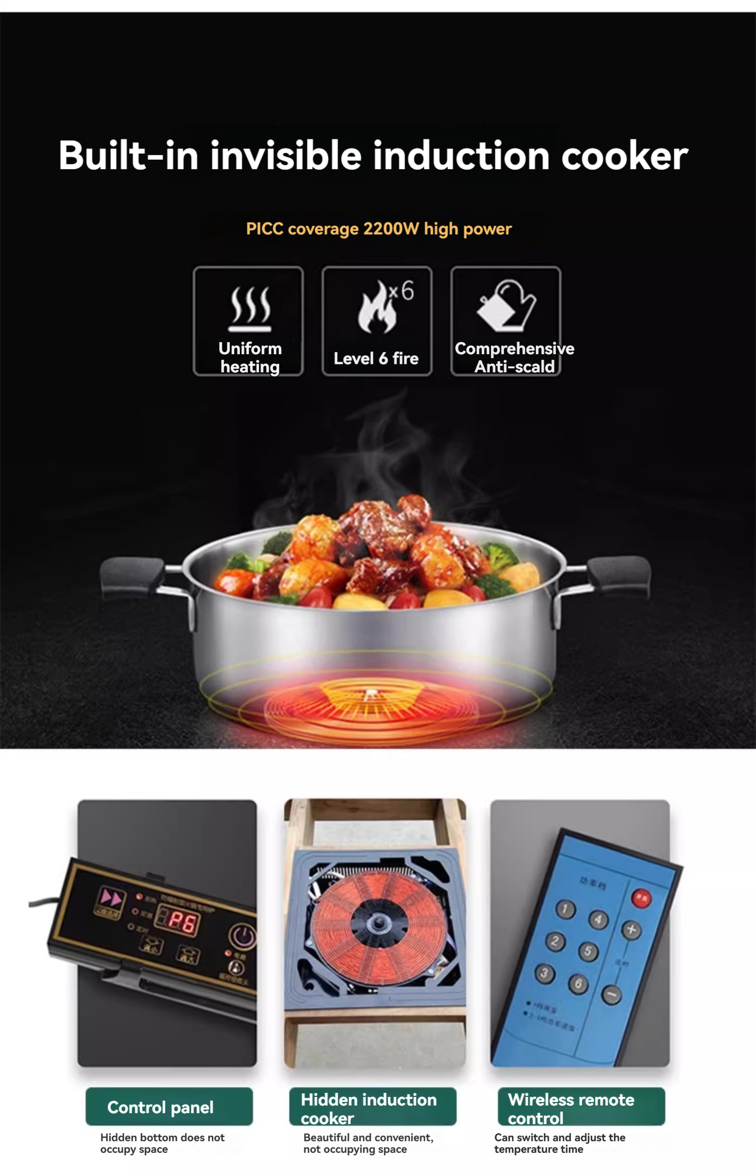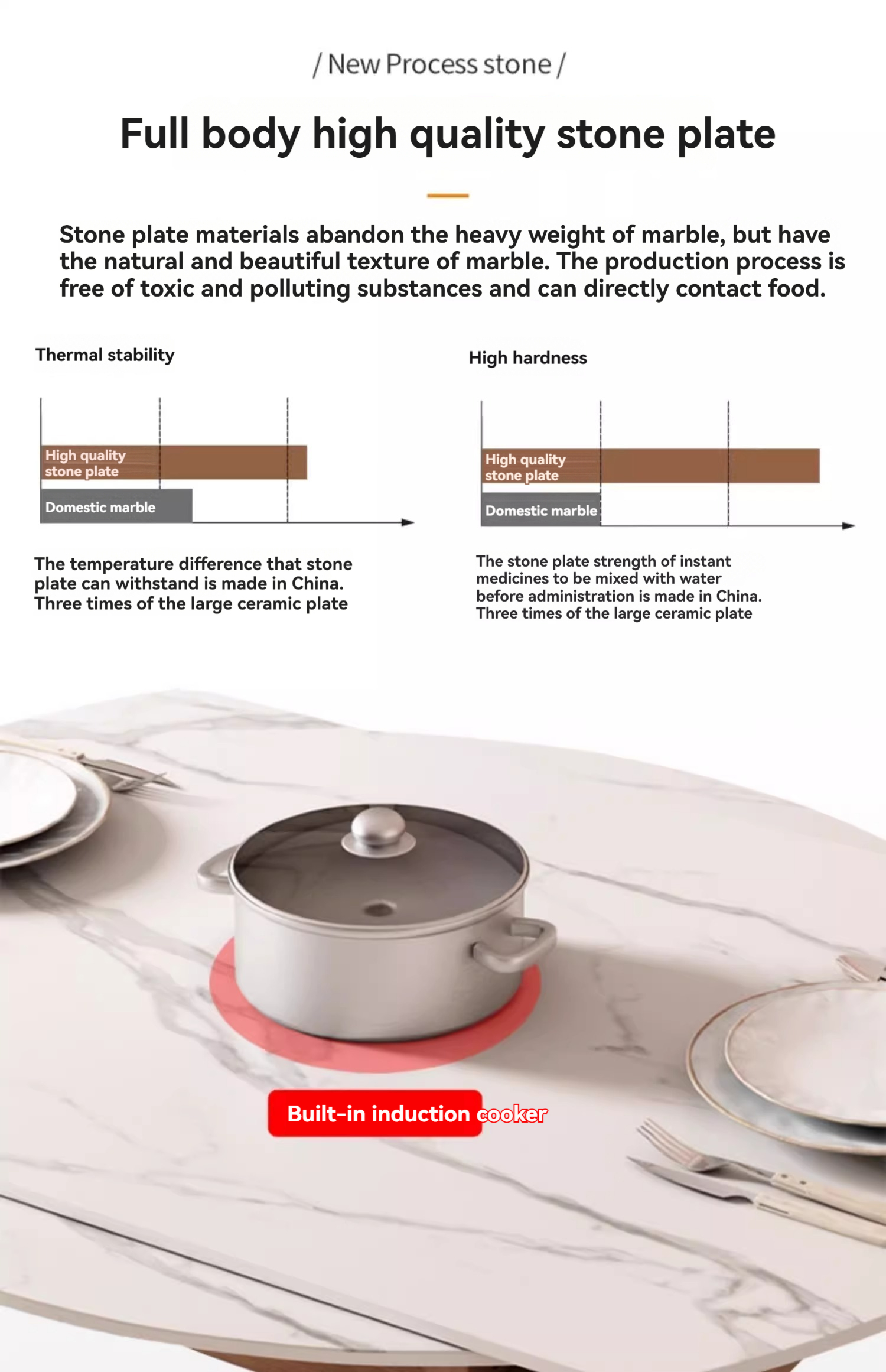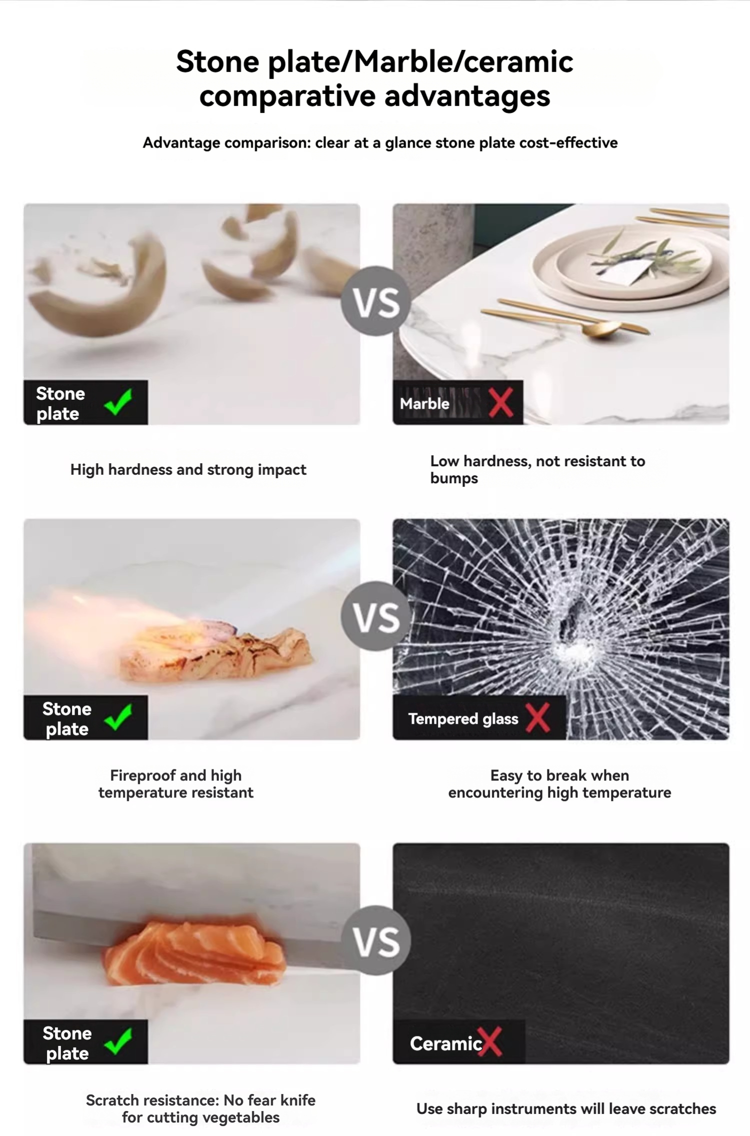 1.2m Induction Dining Table (Jade Flower White Slate)*6 Chairs