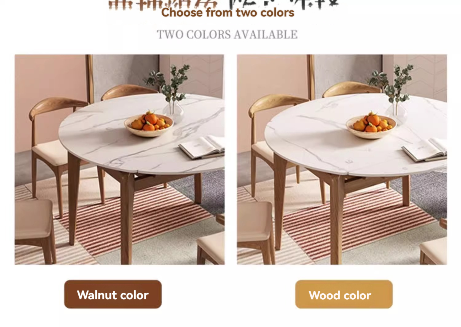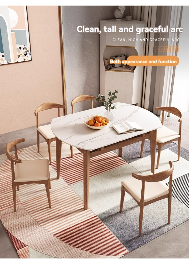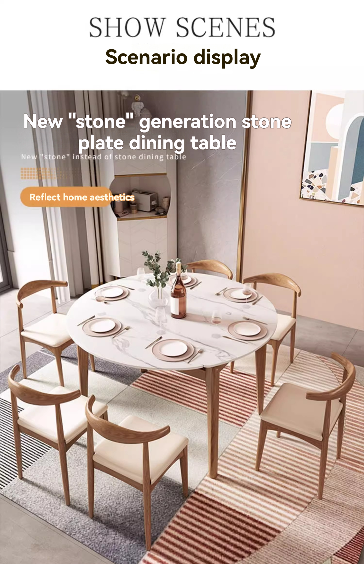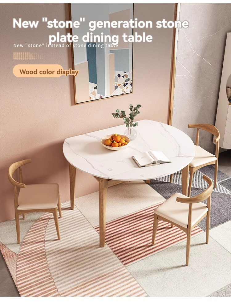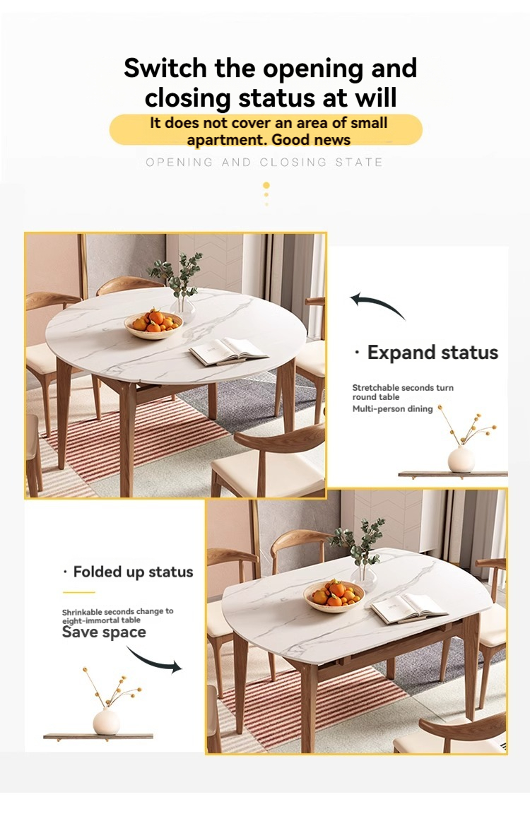 [Pre-order] Scandinavian folding rock plate dining table and chair combination modern simple household small household dining table retractable solid wood round table-Smart-Living [Pre-order] Scandinavian folding rock plate dining table and chair combination modern simple household small household dining table retractable solid wood round table-Smart-Living