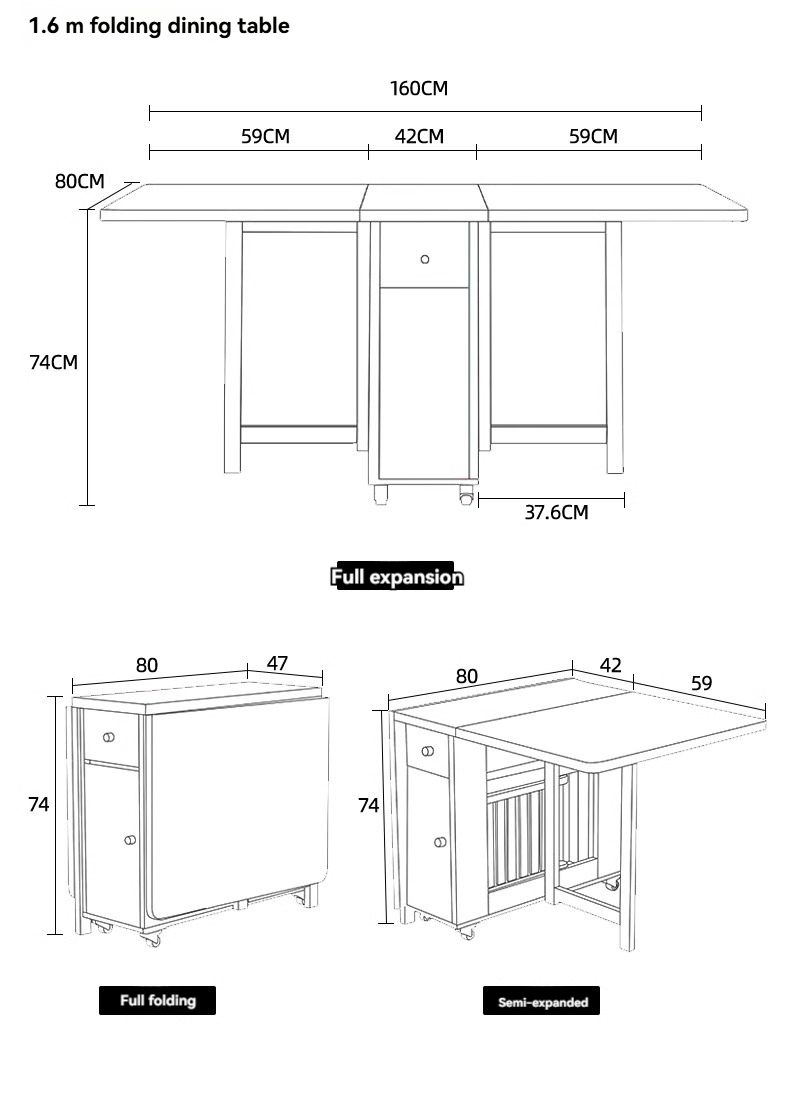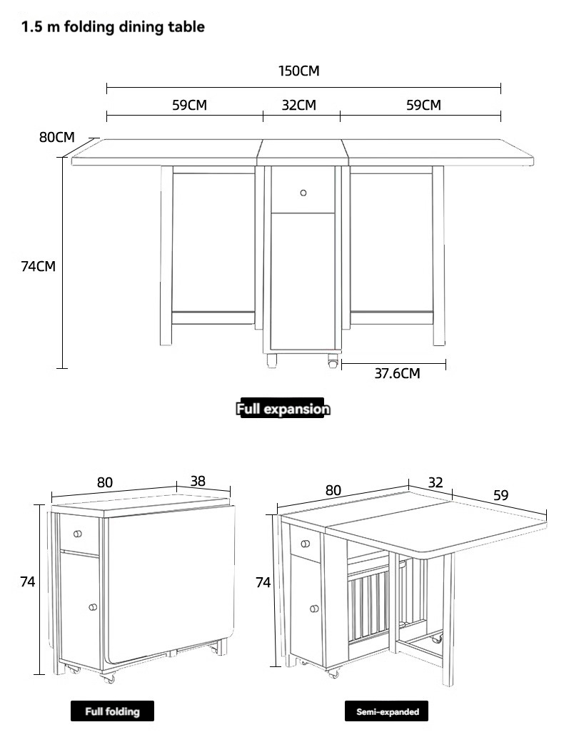 1.5 meter single table+dining side cabinet+4 carbon steel chairs,