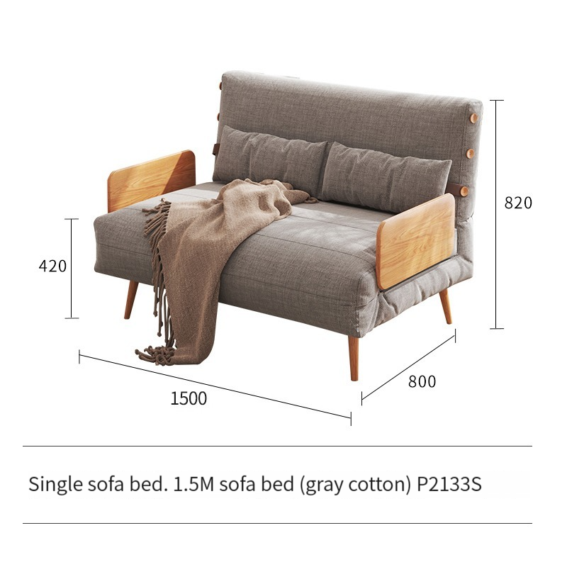 Introducing our Huanas Japanese Sofa Bed – a modern and simple dual-purpose addition to your living room with solid wood legs. Crafted from wood, this sofa bed offers three modes: sitting comfortably, half-lying, and lying down to sleep. Its foldable design makes it multifunctional, suitable for both double and single use in small households.