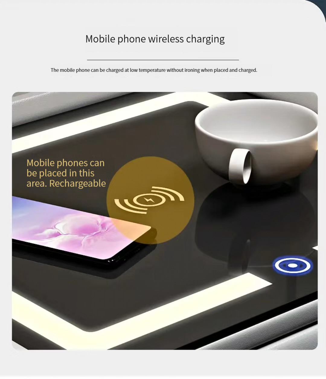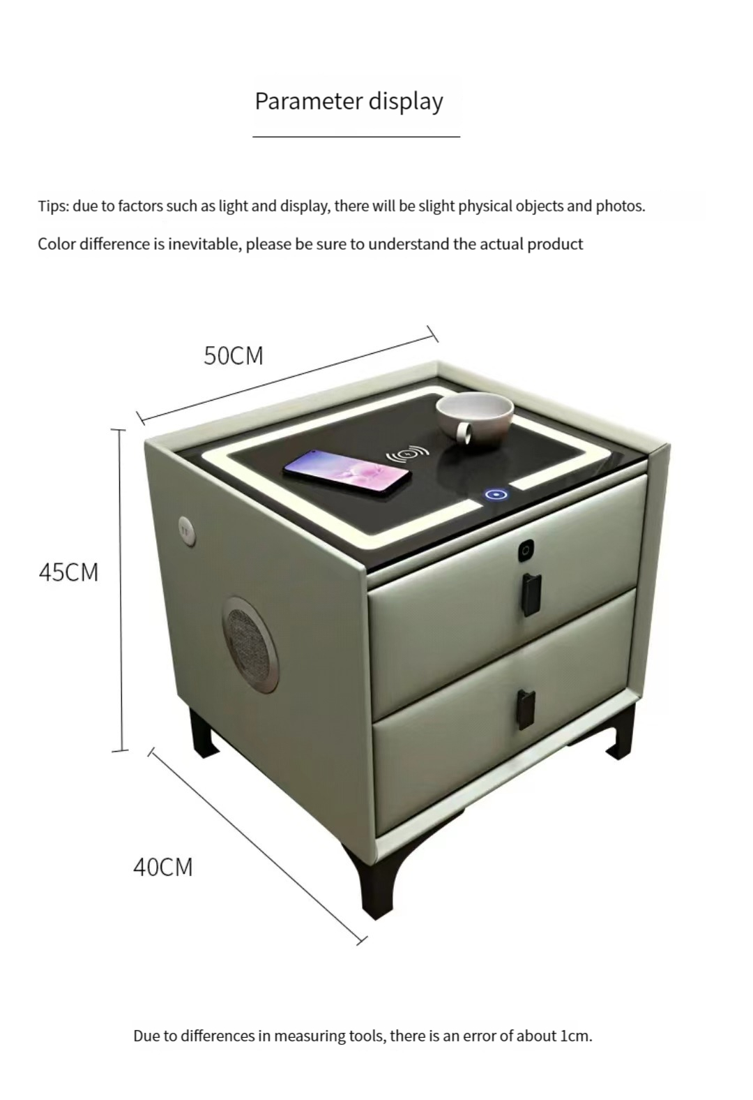 Intelligent bedside table wireless charging, modern minimalist leather intelligent bedside table fingerprint lock, Bluetooth with light, multifunctional