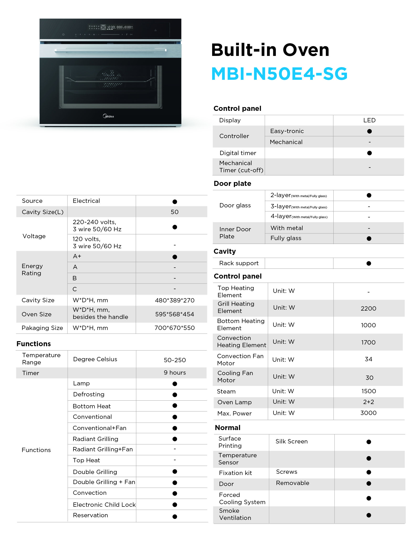 MIDEA BUILT-IN STEAM/CONVENTIONAL OVEN (MBI-N50E4-SG)