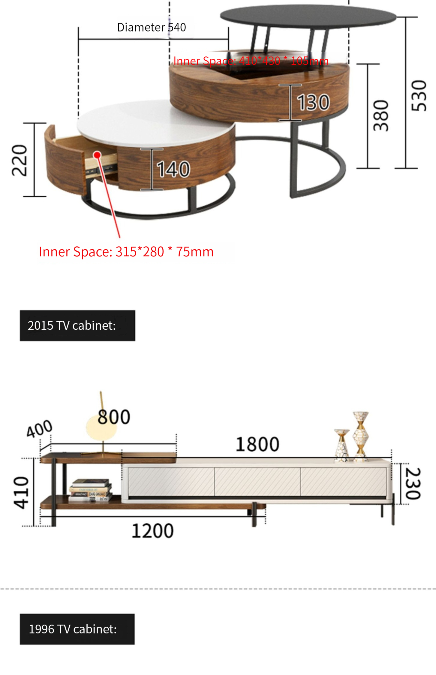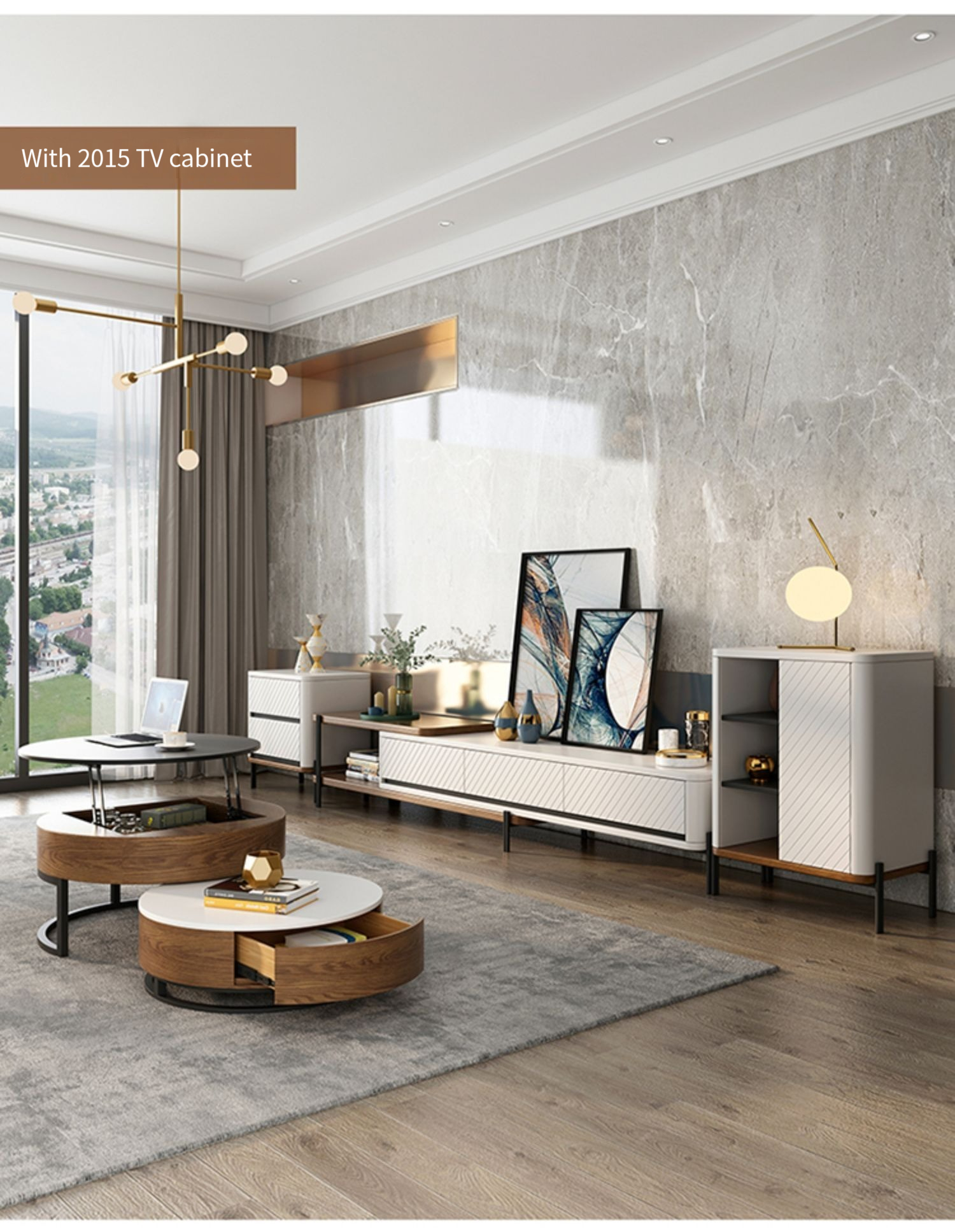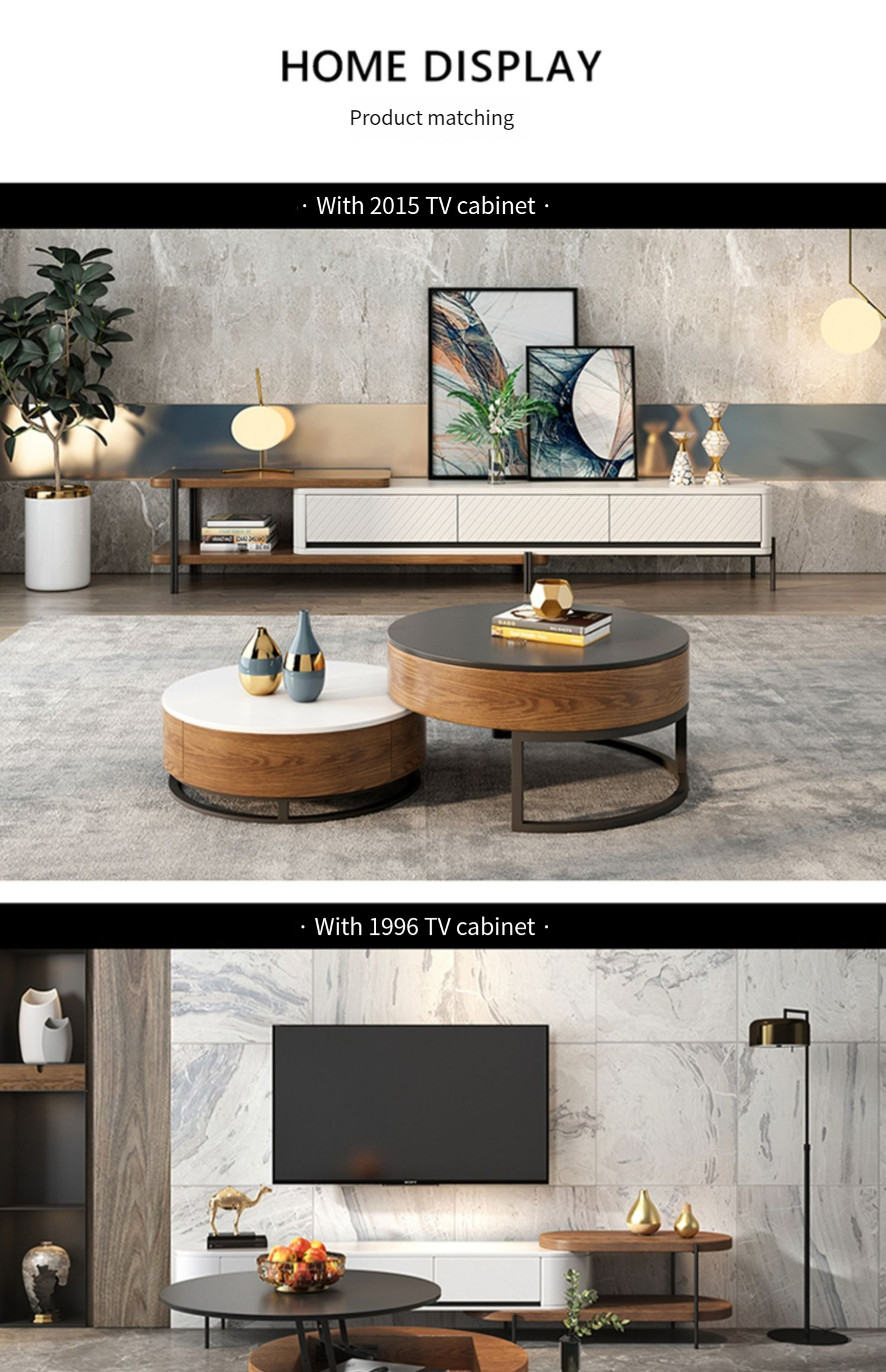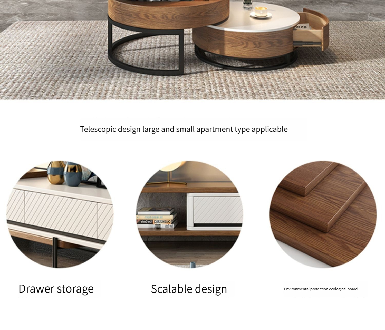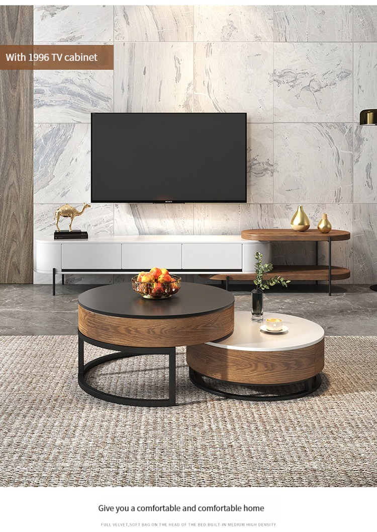 Nordic Elevated Tea Table TV Cabinet Combination Modern Simple, Light Luxury, Minimalist Circular Tea Table, Small Family Living Room Furniture