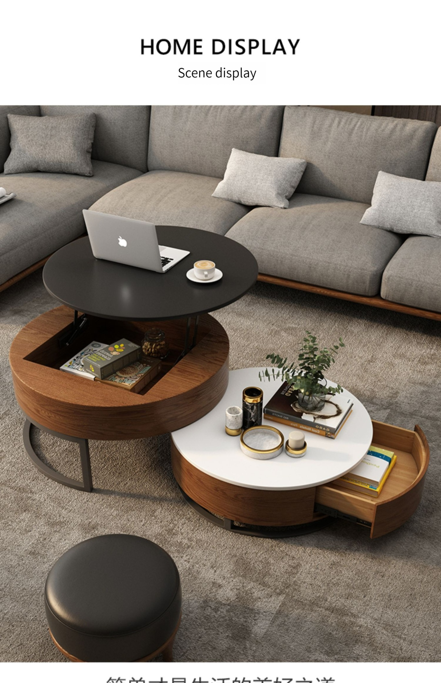 Sleek and versatile, this Nordic tea table features a lifting design and built-in storage, merging minimalist style with practicality for modern homes."