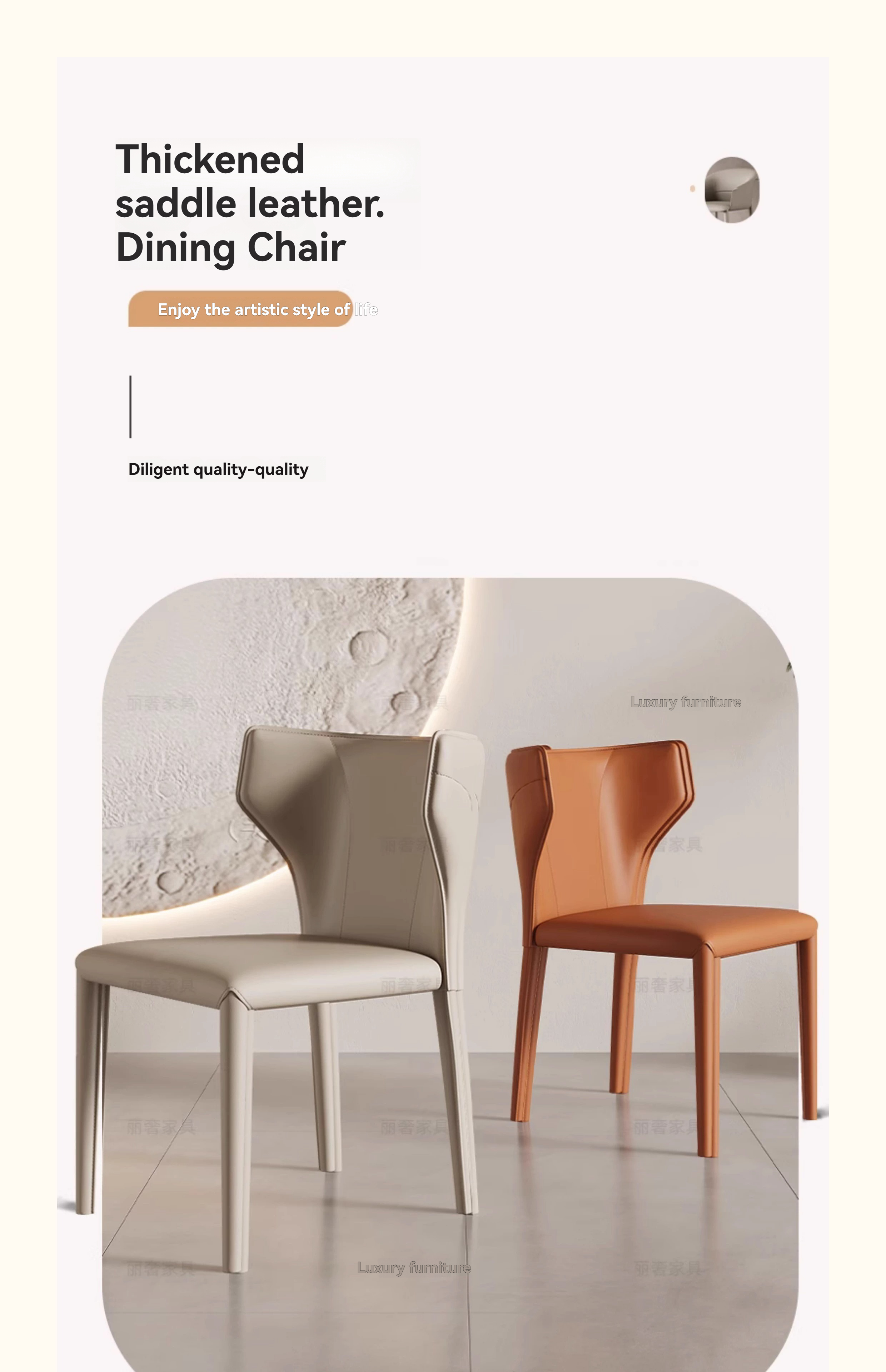 PRE ORDER / BTO PACKAGE - VR - Chair - FD-Y11 Italian Saddle Leather Dining Chair - 2025 New Model, Modern Minimalist Luxury Designer Home Dining Room Table Chair with Backrest