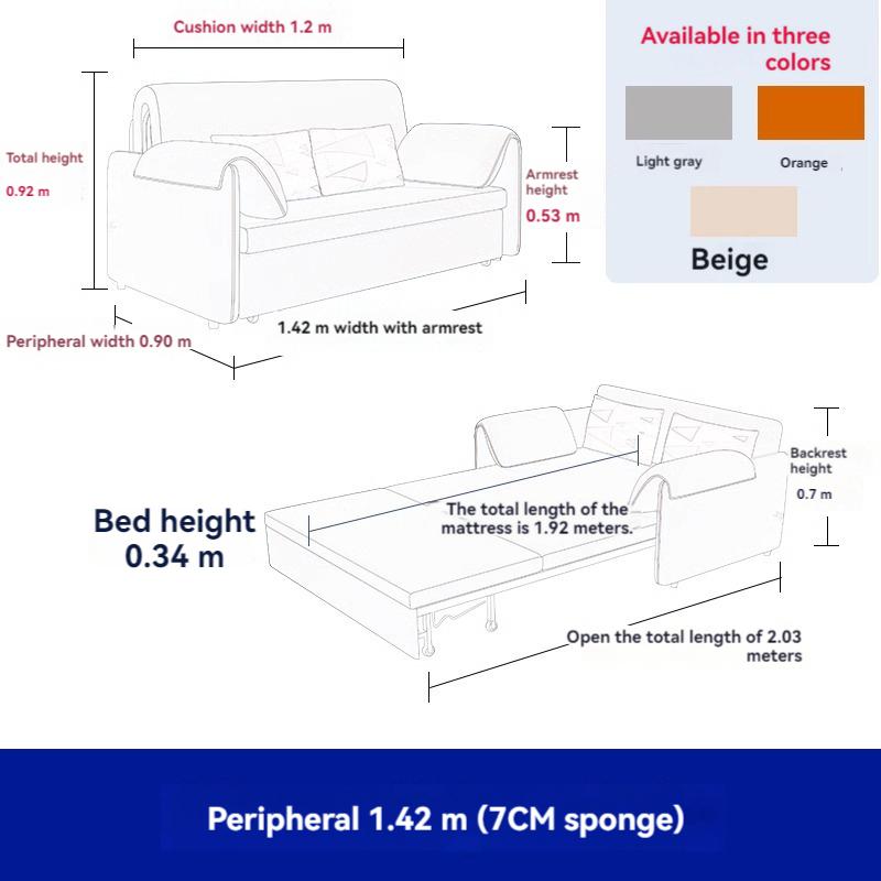 1.42m sofa bed (5cm sponge +2cm latex) with storage