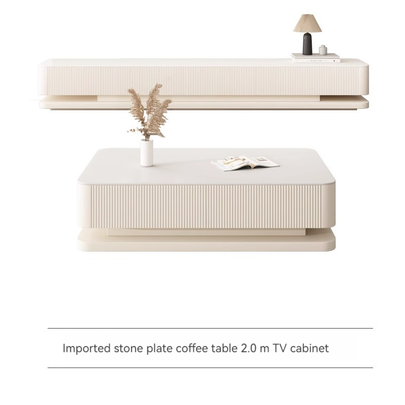 [Pre-order] Rock panel coffee table TV cabinet combination 3m living room floor cabinet Modern simple cream wind light luxury senior small household-Smart-Living [Pre-order] Rock panel coffee table TV cabinet combination 3m living room floor cabinet Modern simple cream wind light luxury senior small household-Smart-Living