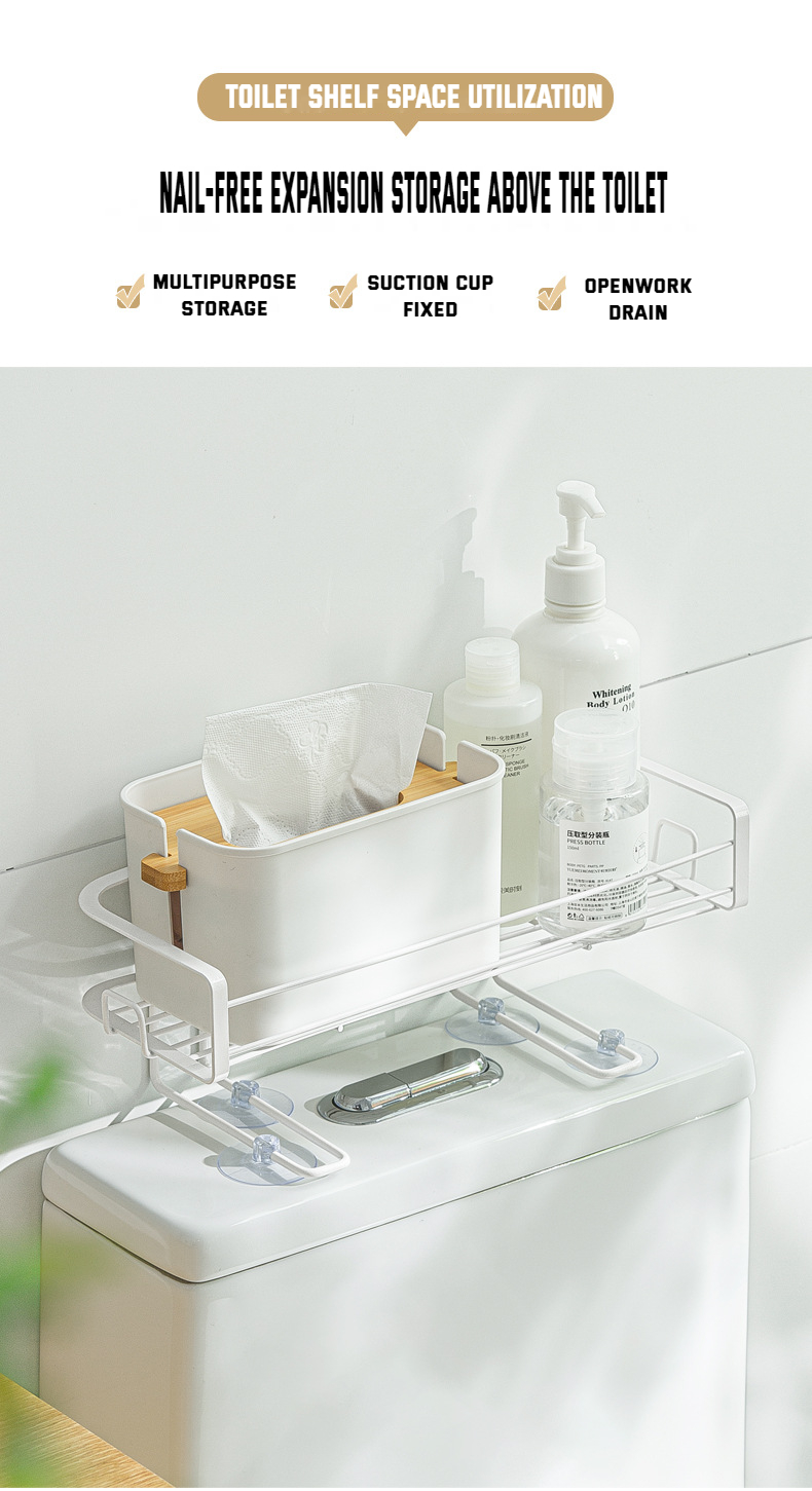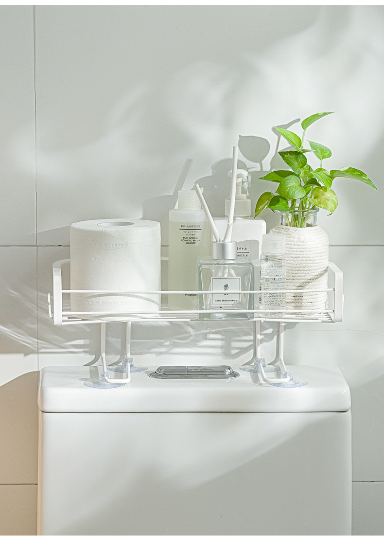 【Introduction】: The toilet rack is made of high-quality iron. It can be placed on the toilet tank to store all kinds of bathroom supplies. The vacuum suction cup is fixed, ready to use. The heightened bracket does not block the water tank button, which is suitable for most toilets on the market. Hollow-out design, water-draining and breathable. Large-capacity storage area, easy storage of bath bottles and cans, extended storage of double-sided hooks, hanging small objects to drain and air dry. It can bear 5KG, it is not easy to be deformed by pressing, and the toiletries are convenient to use.