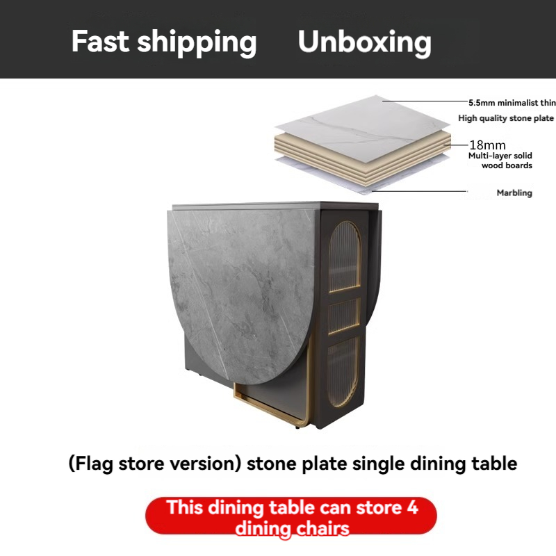 Solid wood folding dining table, integrated dining edge cabinet, small unit, light luxury style, multifunctional, movable dining rock board folding table-Smart-Living