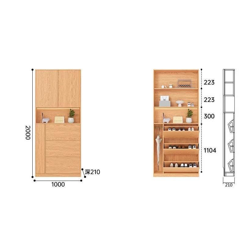 Solid wood custom shoe cabinet for home use, entrance hallway, narrow stairwell, single-layer flip-down shoe cabinet, oak wood, integrated storage.