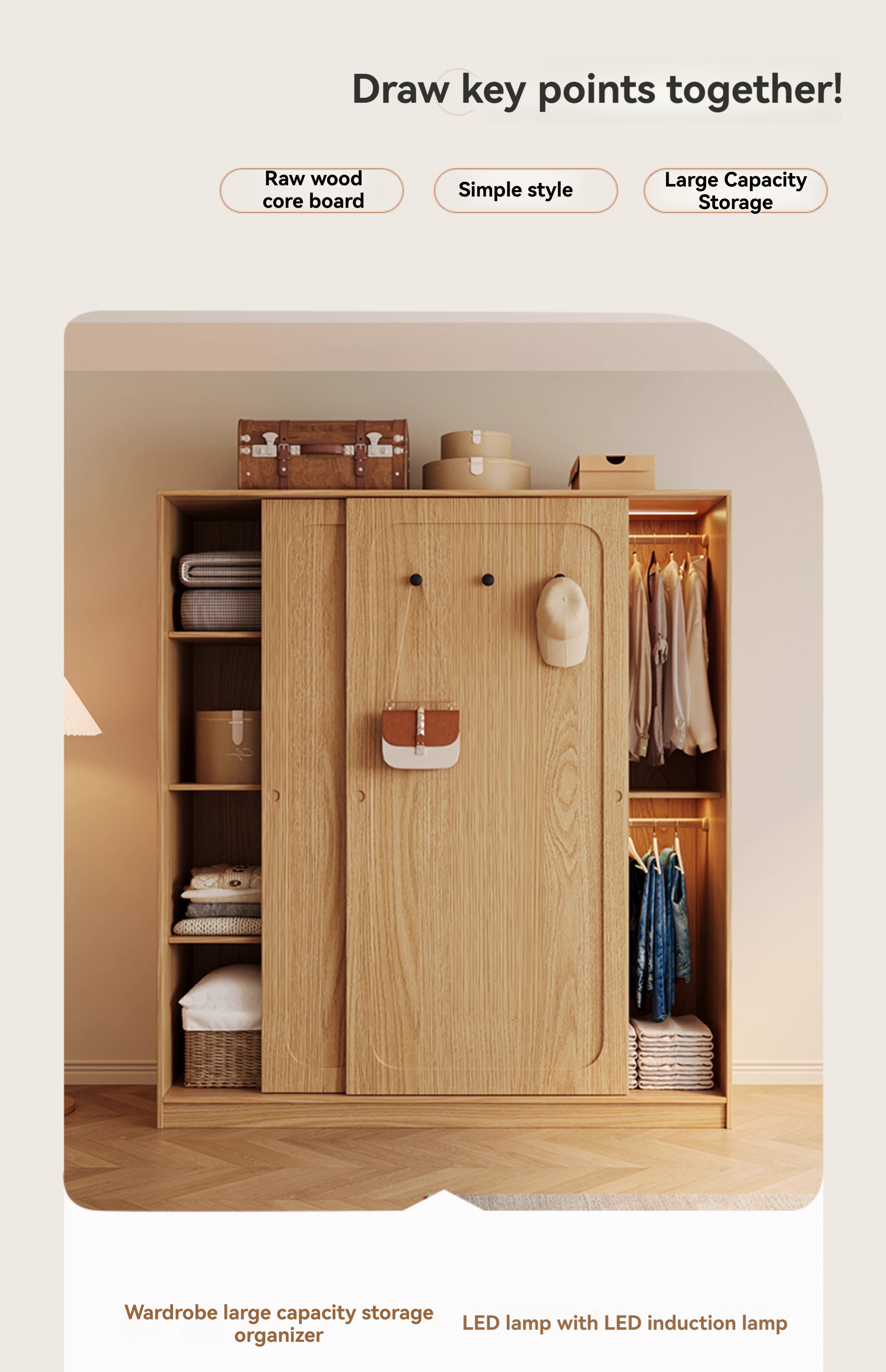 [18MM Solid Wood Core Board] 2.0m Wardrobe+Drawn Edge Cabinet