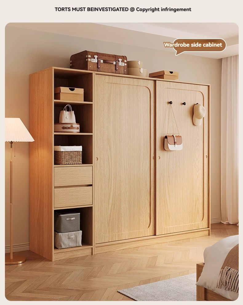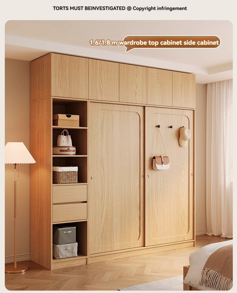 [18MM Solid Wood Core Board] 1.8-meter Wardrobe+Drawn Edge Cabinet+Top Cabinet