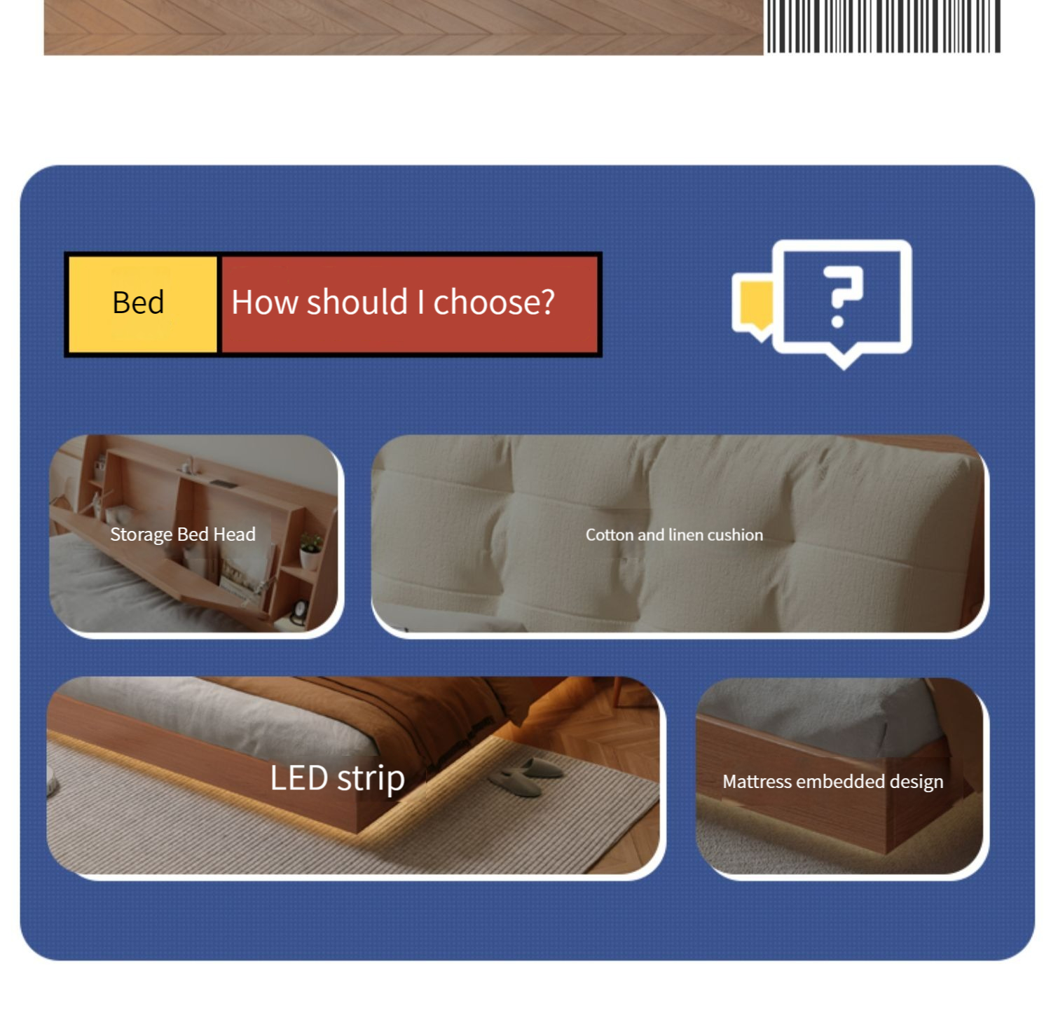 [Cherry wood color - with light strip] Regular bed (without headboard) + coconut palm mattress (B2205H+MLD)