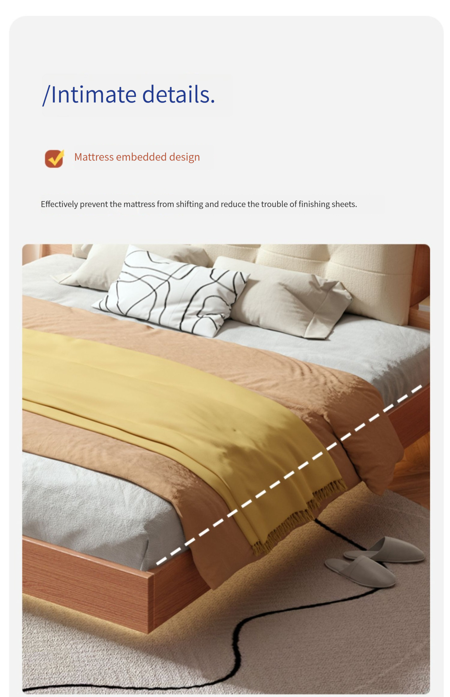 [Cherry wood color - with light strip] Regular bed (with headboard) + mattress (B2205H+MLD)