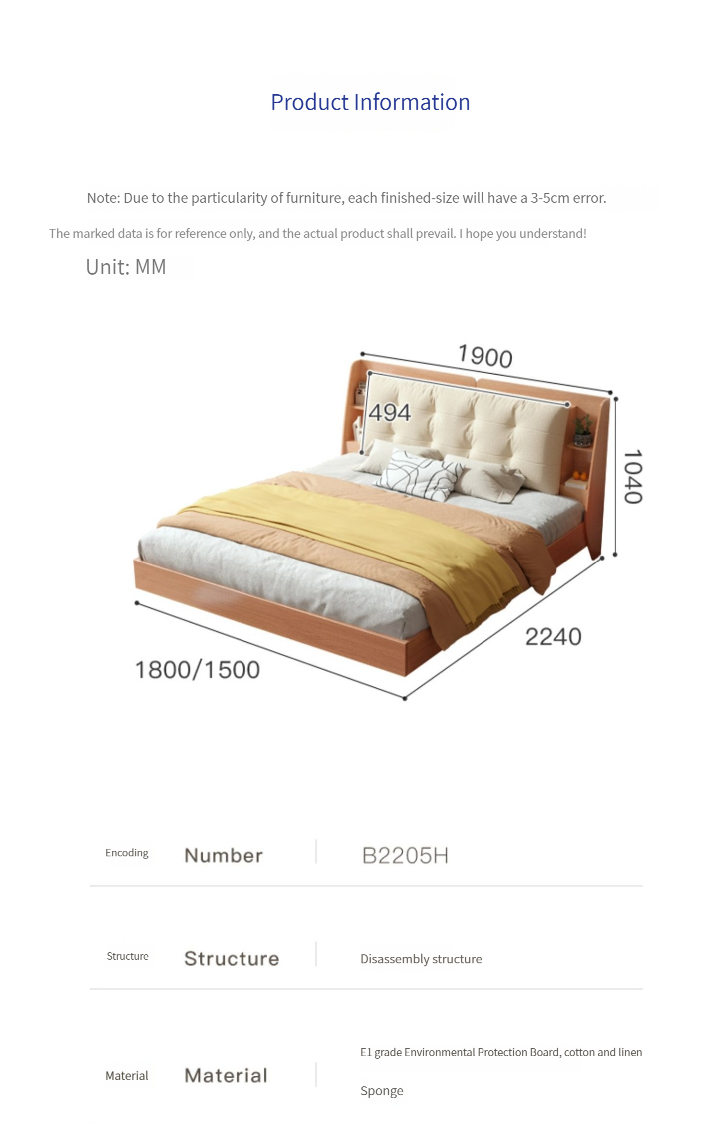 [Cherry wood color - with light strip] Regular bed (without headboard - B2205H)