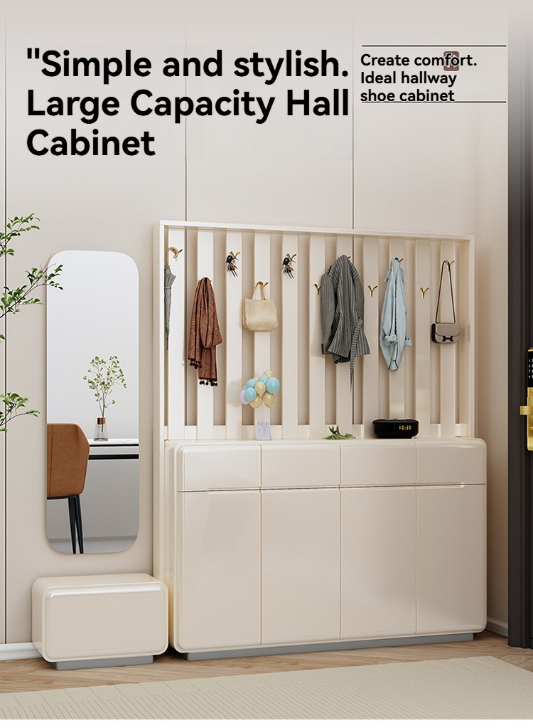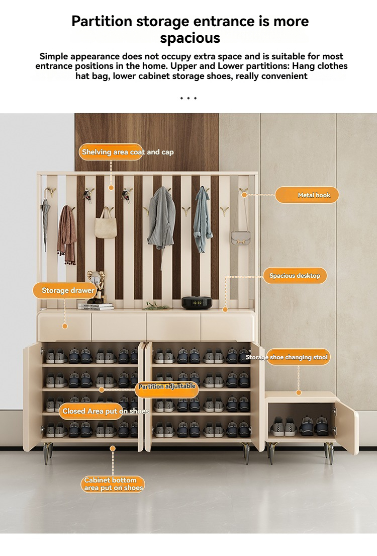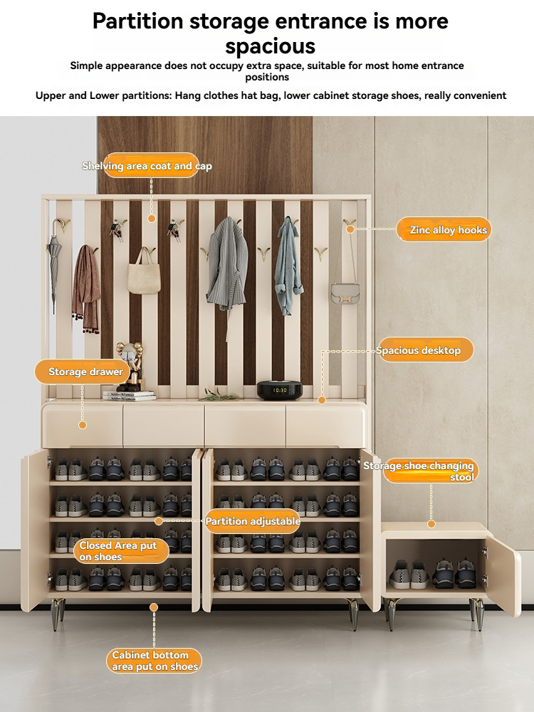 [Pre-order]Light luxury home door shoe cabinet with hanger modern simple entry partition entrance cabinet integrated living room cloak cabinet
