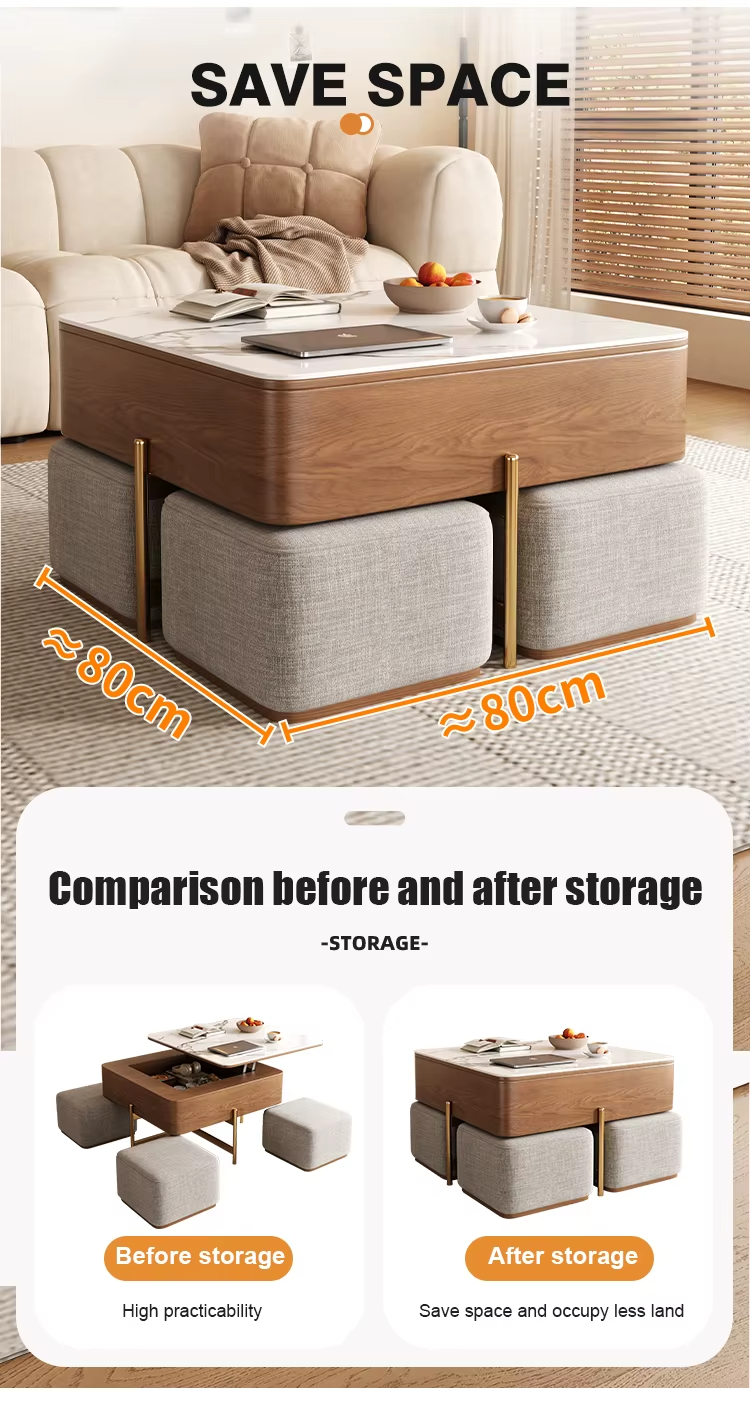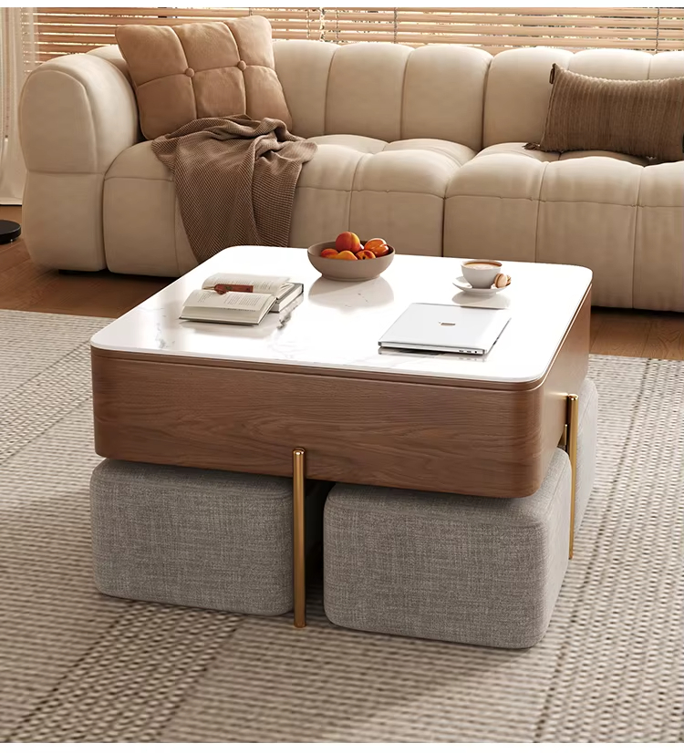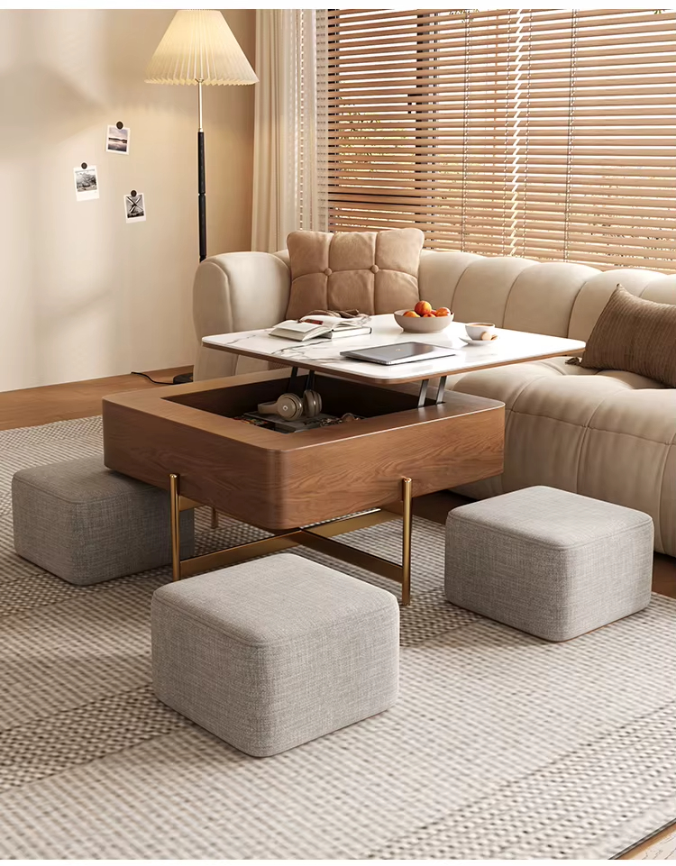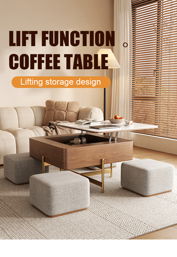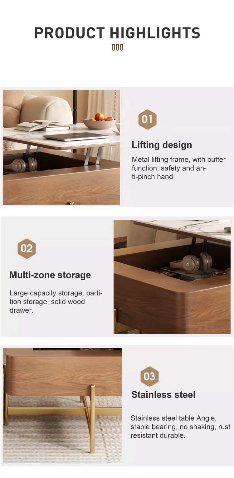 Light Luxury Rock Panel Lifting Tea & Coffee Table
