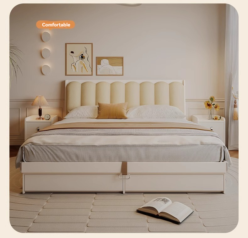 [Pre-order] Muzuki Double Bed Cream Style Smart Storage Box Bed Modern Simple Soft Recumbent Small Apartment Master Bedroom Tatami Wedding Bed-Smart-Living
