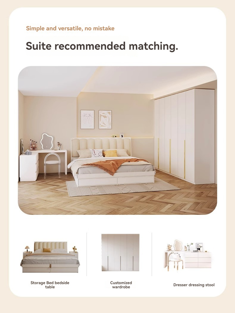 [Pre-order] Muzuki Double Bed Cream Style Smart Storage Box Bed Modern Simple Soft Recumbent Small Apartment Master Bedroom Tatami Wedding Bed