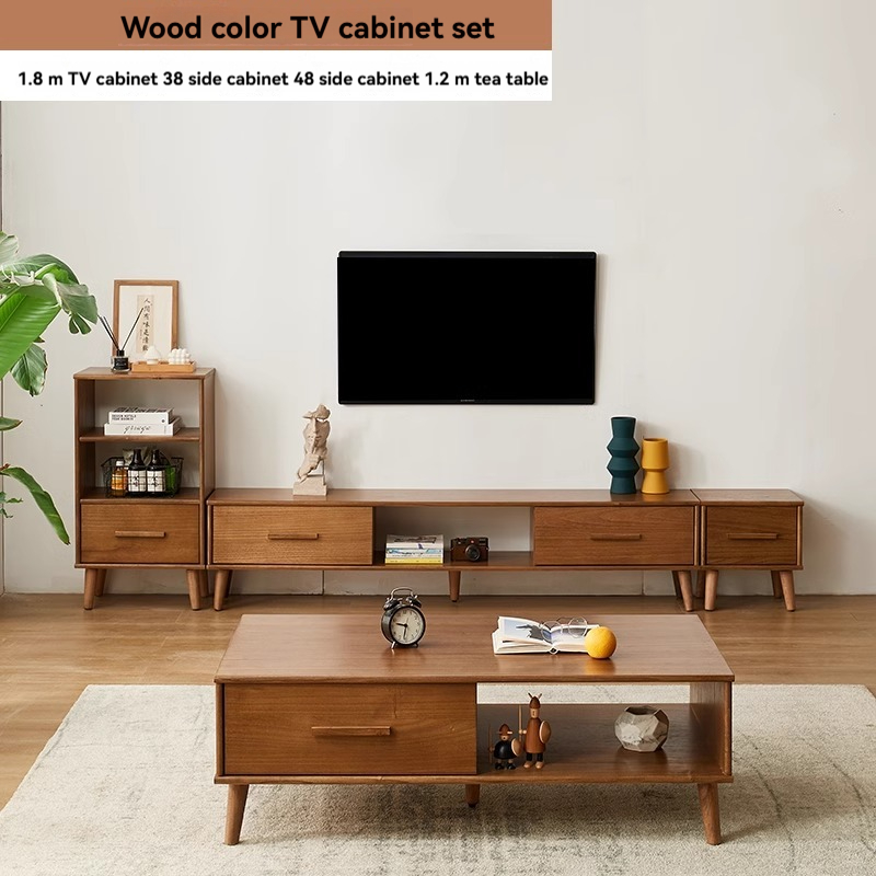 [pre order]Nordic Modern Simple All Solid Wood TV Cabinet Coffee Table Combination Small Apartment Living Room Hotel Apartment Bedroom