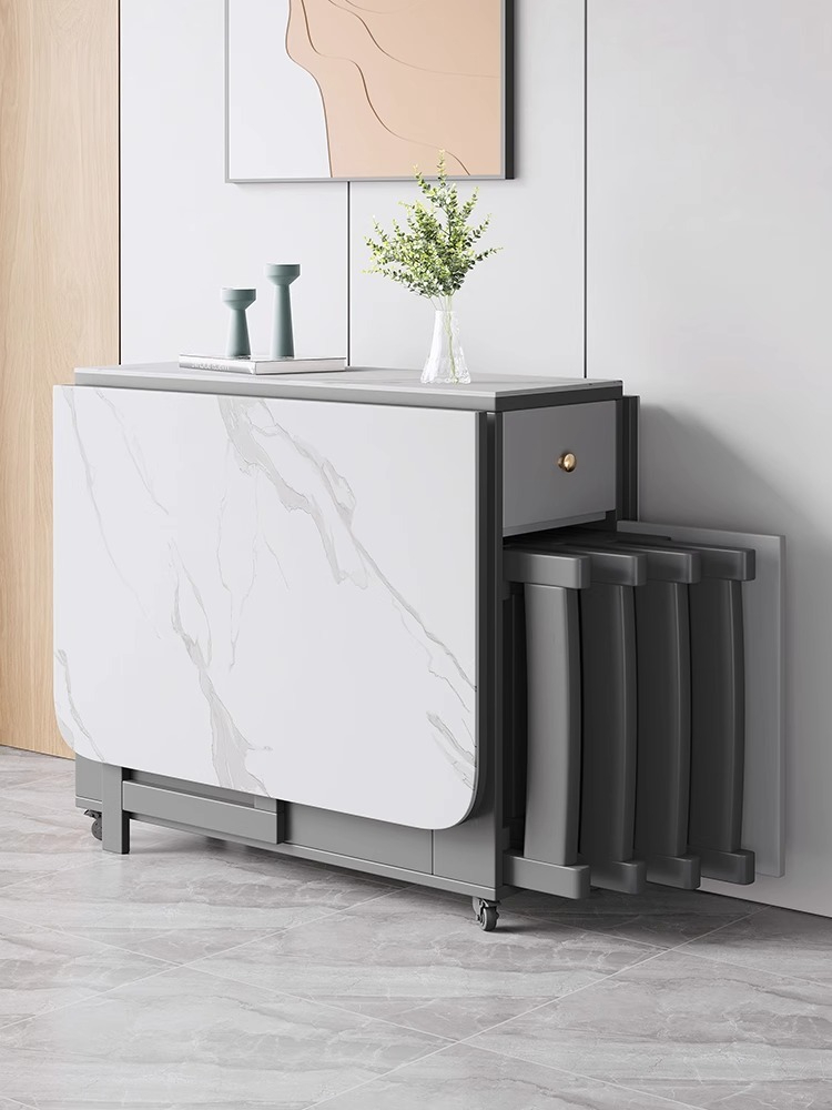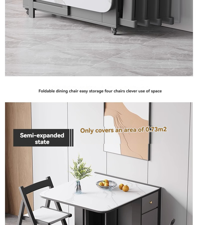 [Pre-order]Oulang  Rock plate folding dining table and chairs combination of modern and simple rental housing household small household movable rectangular row eating table-Smart-Living [Pre-order]Oulang  Rock plate folding dining table and chairs combination of modern and simple rental housing household small household movable rectangular row eating table-Smart-Living