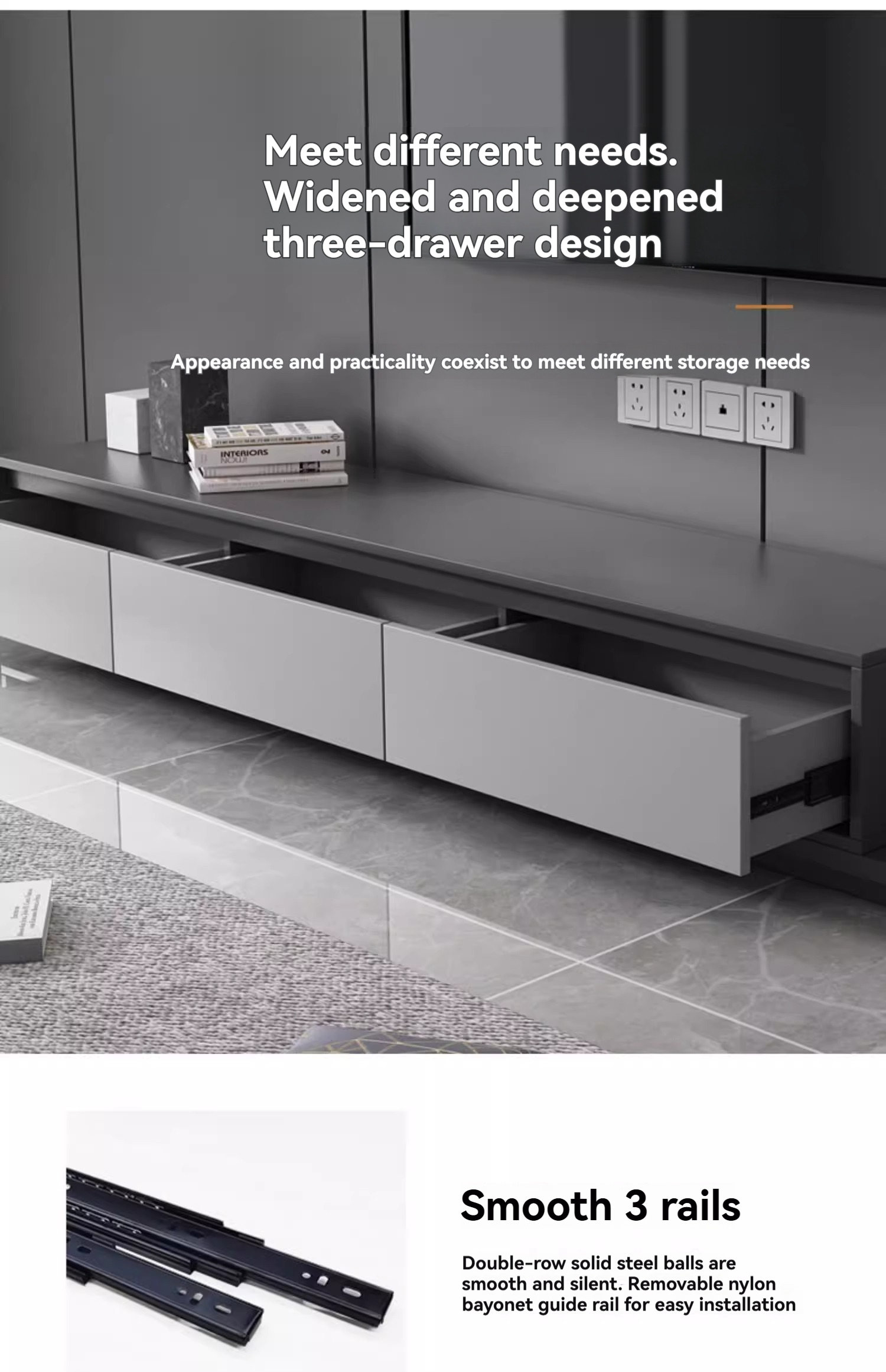Limited edition] LM118 four drawer telescopic TV cabinet (Italian light grey) new
