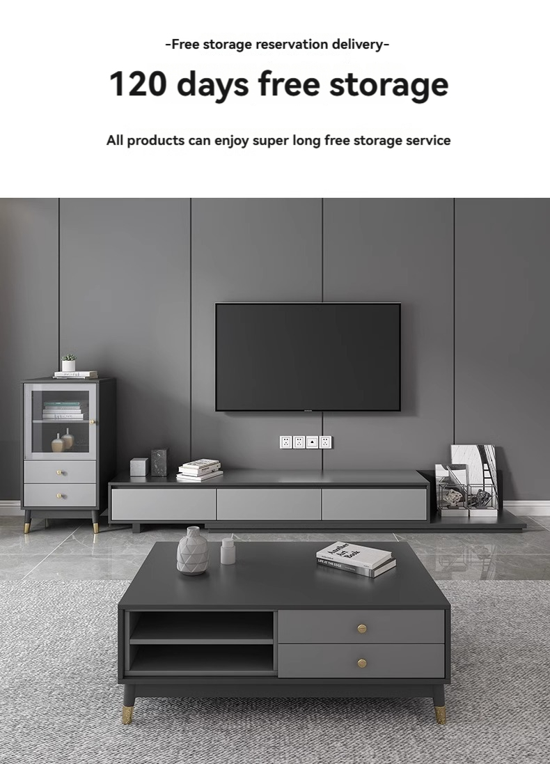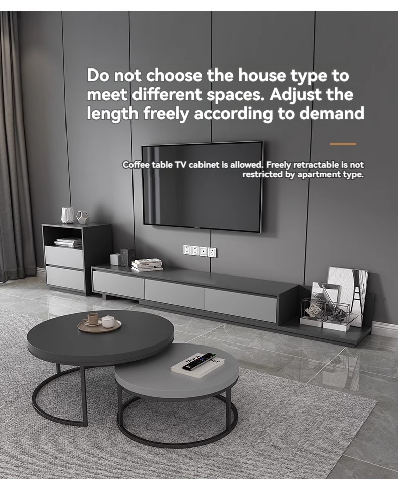 Light Luxury Rock Slab Stretching TV Cabinet + Square Coffee Table 1.2m