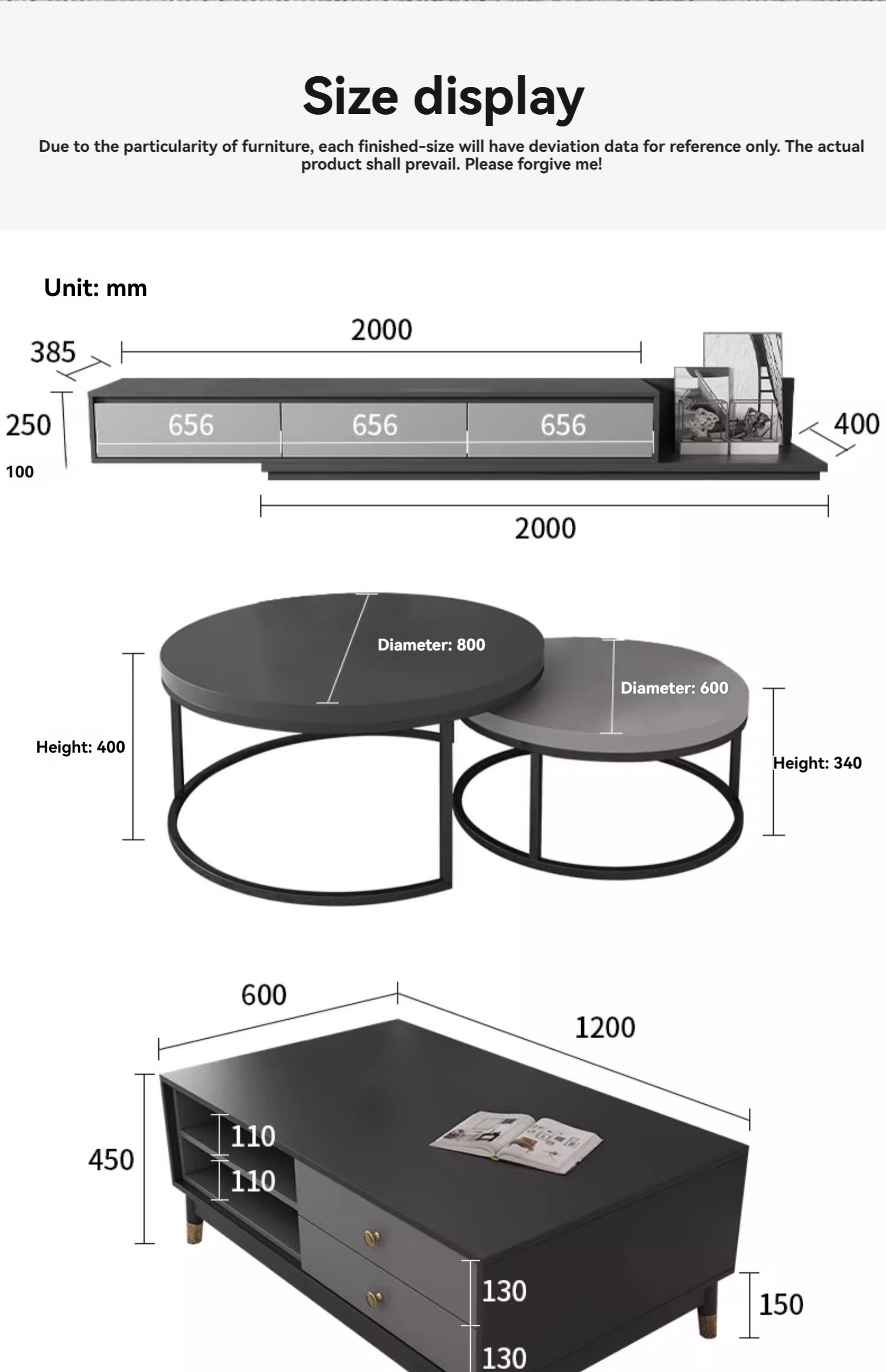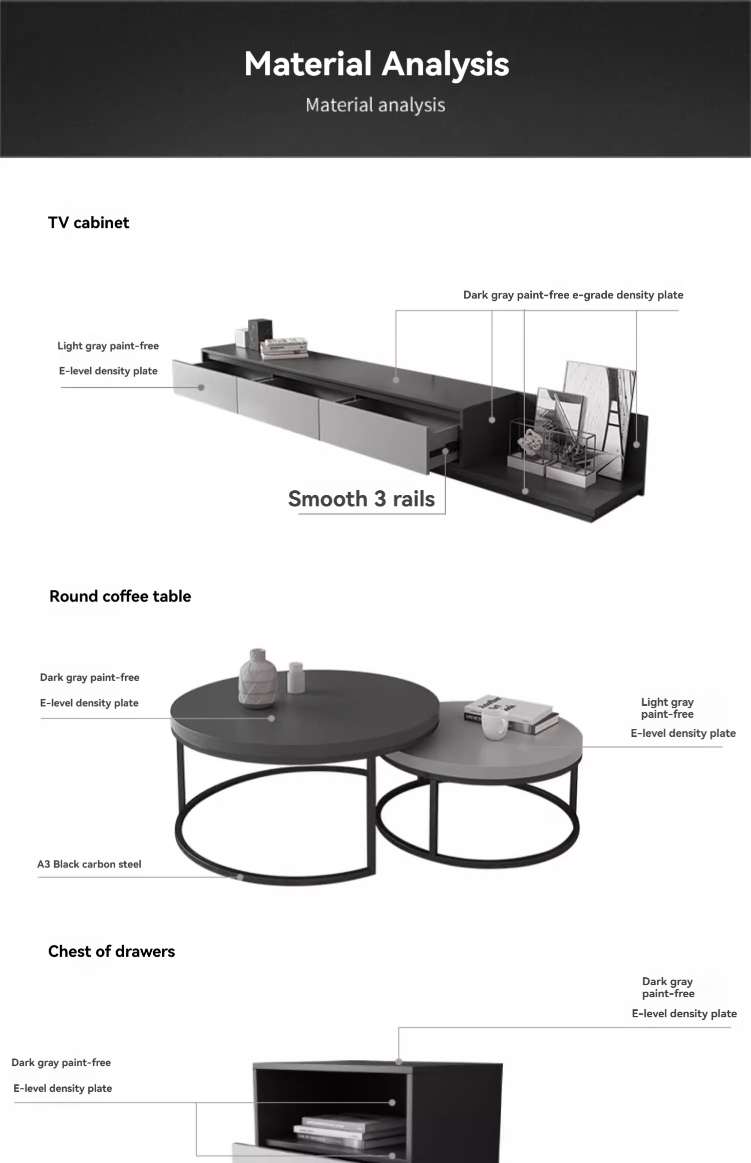Scandinavian TV stand+Round coffee table+Three-drawer cabinet