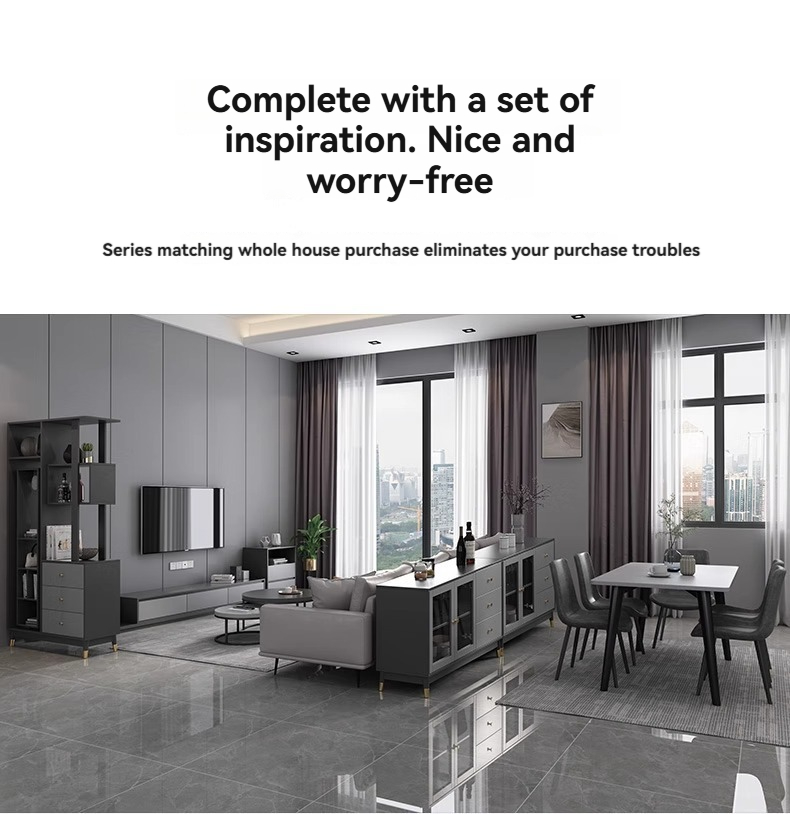 Option A1 TV stand + round coffee table + rock plate dining table 1.2m + dining chairs*4