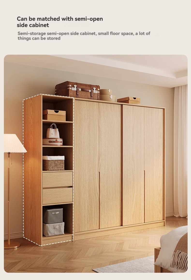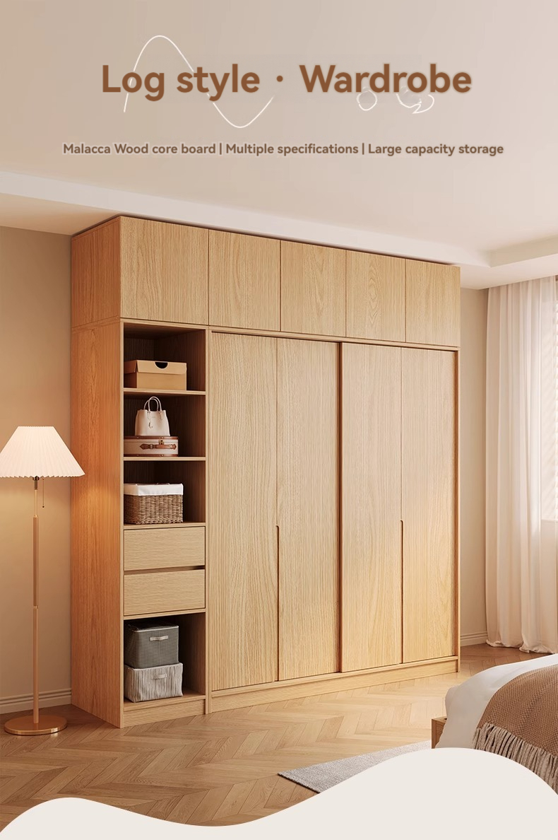 [Pre-order] Wardrobe sliding door, household bedroom, solid wood ecological board wardrobe, wooden style new 2024 popular sliding door wardrobe-Smart-Living