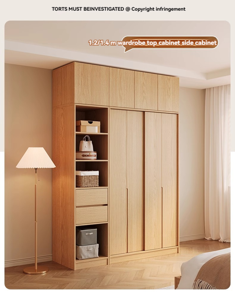 [18MM solid wood core board] 1.4-meter wardrobe+cabinet with drawn edges+top cabinet
