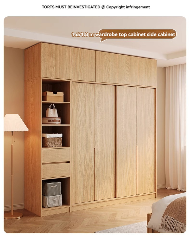 [18MM Solid Wood Core Board] 1.8-meter Wardrobe+Drawn Edge Cabinet+Top Cabinet