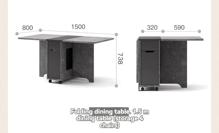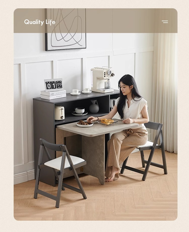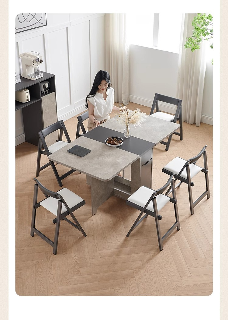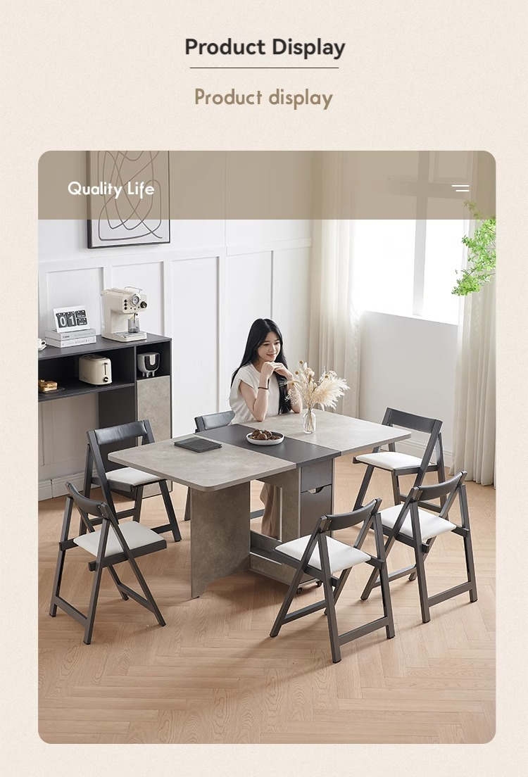[Pre order] Wooden Folding Dining Table with Sideboard and Folding Stools For Small Household [Pre order] Wooden Folding Dining Table with Sideboard and Folding Stools For Small Household