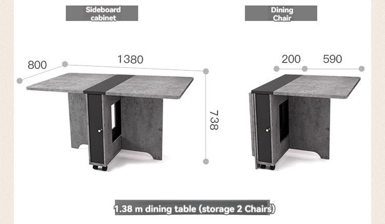 Cement Grey 1.38 Single Table + 2 Chairs + Sideboard Upgrade Table Top