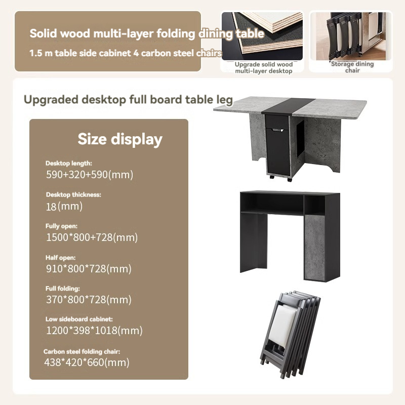 [Pre order] Wooden Folding Dining Table with Sideboard and Folding Stools For Small Household [Pre order] Wooden Folding Dining Table with Sideboard and Folding Stools For Small Household