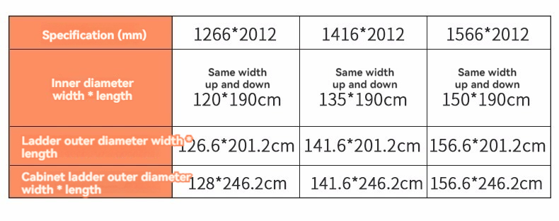 Dimensions: 1200mm * 2000mm, 1350mm * 2000mm, 1500mm * 2000mm