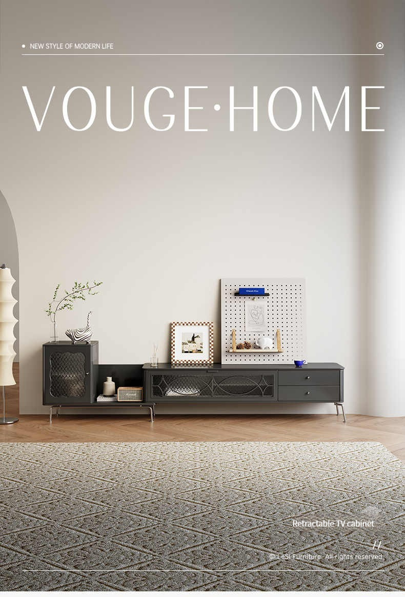 【 Black matte 】 B2226D telescopic TV cabinet