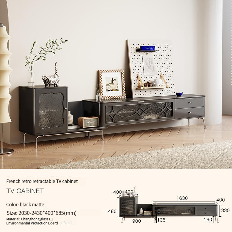 French telescopic TV cabinet, living room, small unit, 2022 new black retro storage and storage integrated TV cabinet