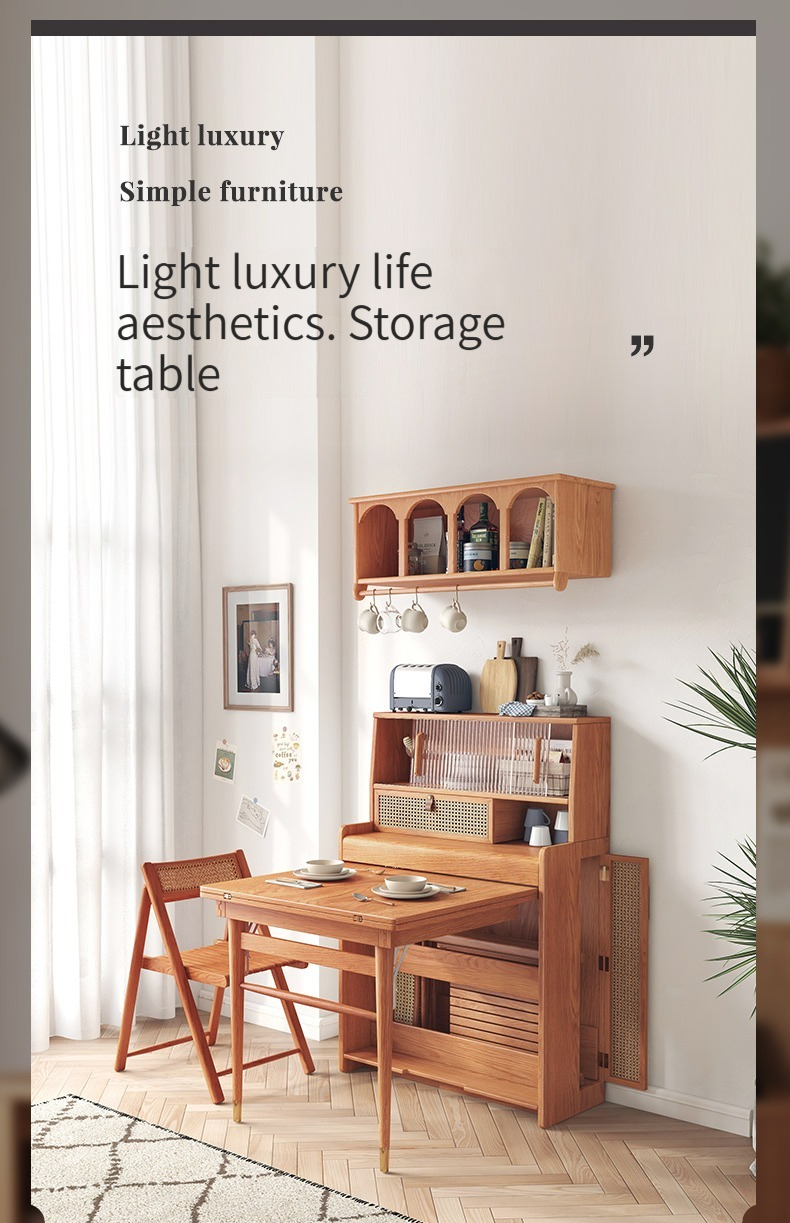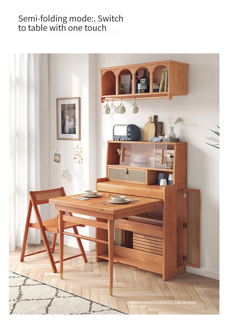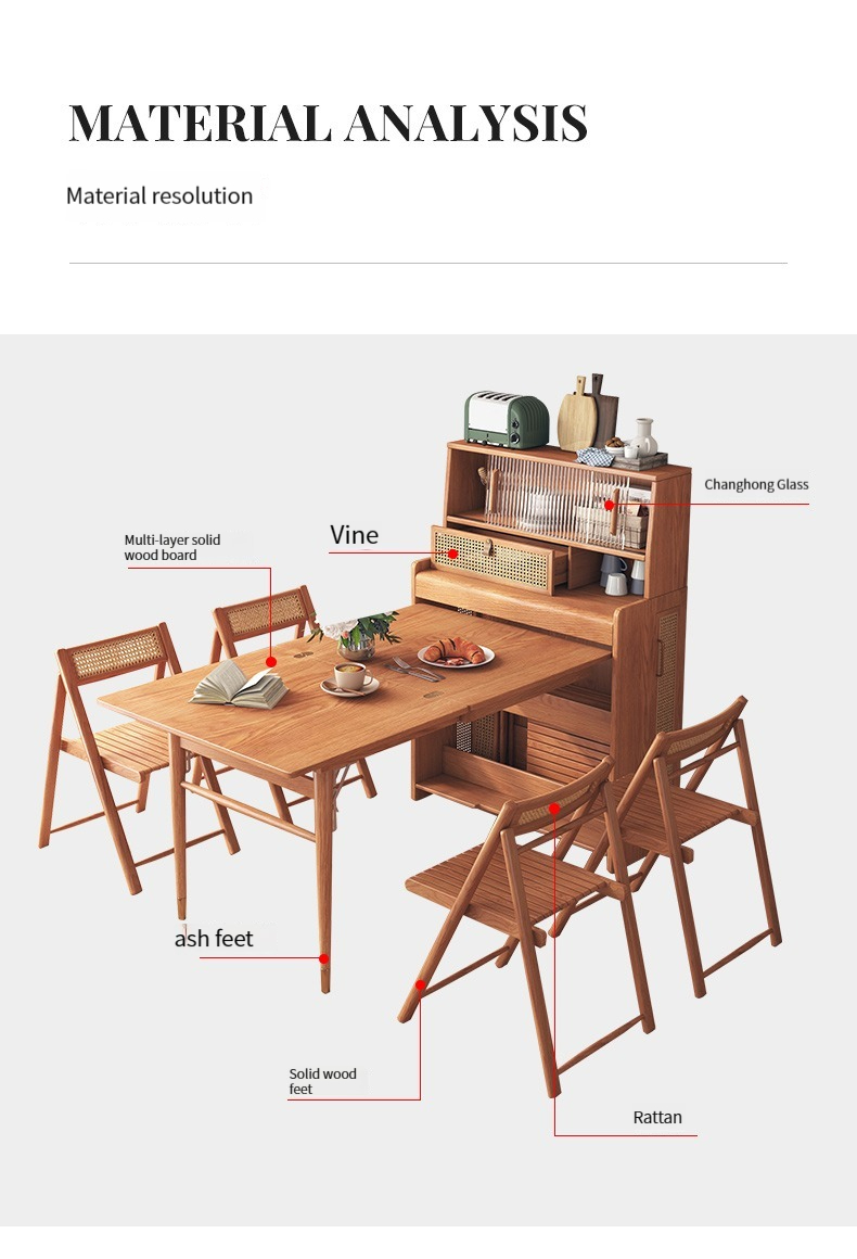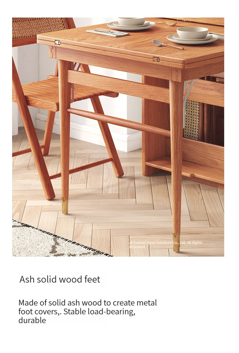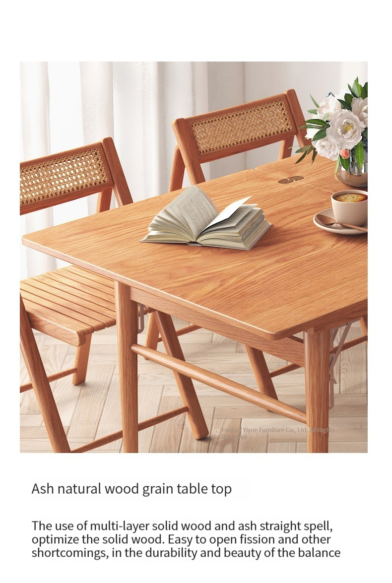 Japanese-style foldable dining table, household small apartment modern minimalist rectangular solid wood dining table and chair combination.