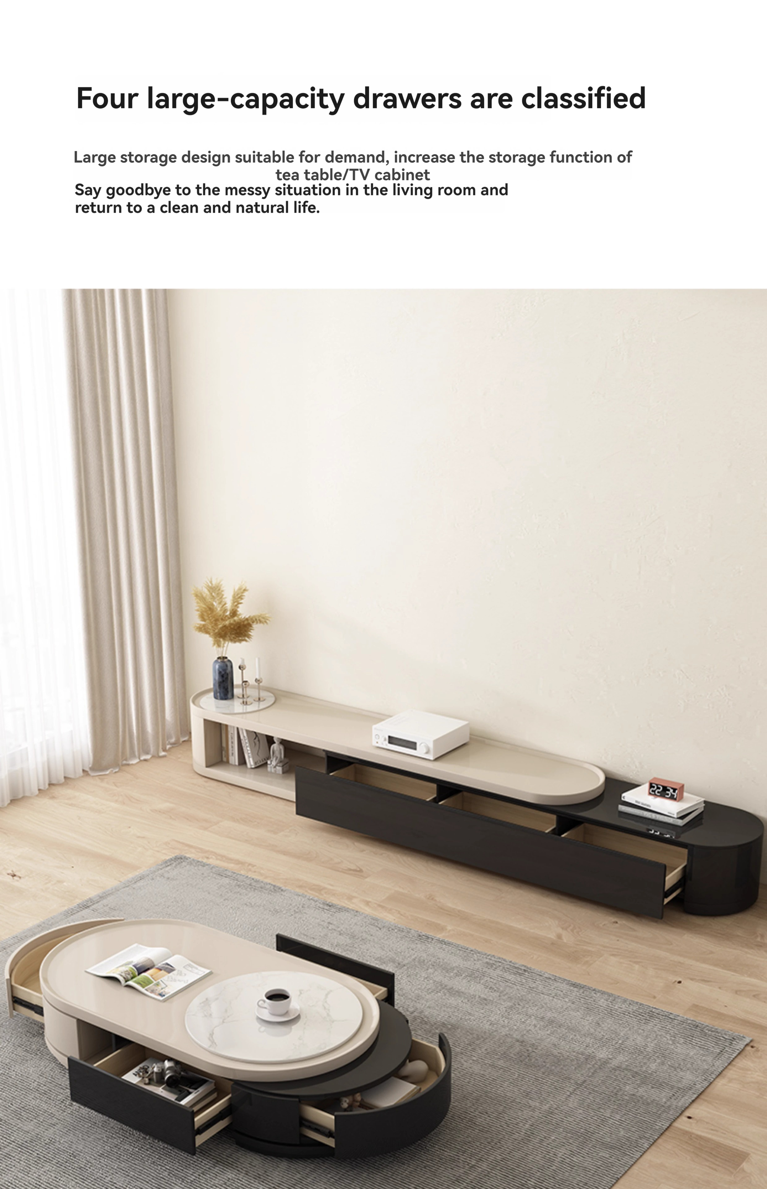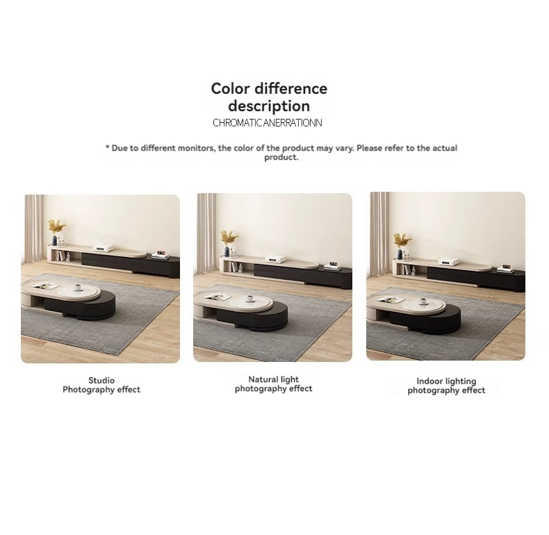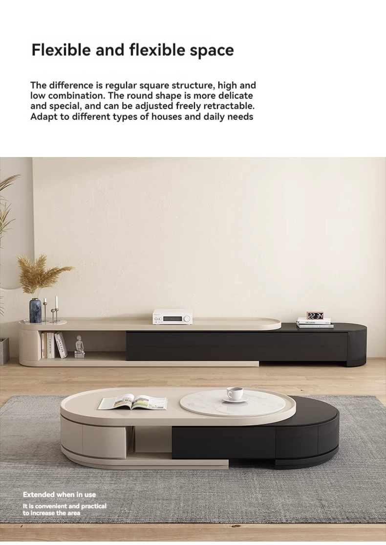 [Imported rock plate] Telescopic coffee table + telescopic TV cabinet