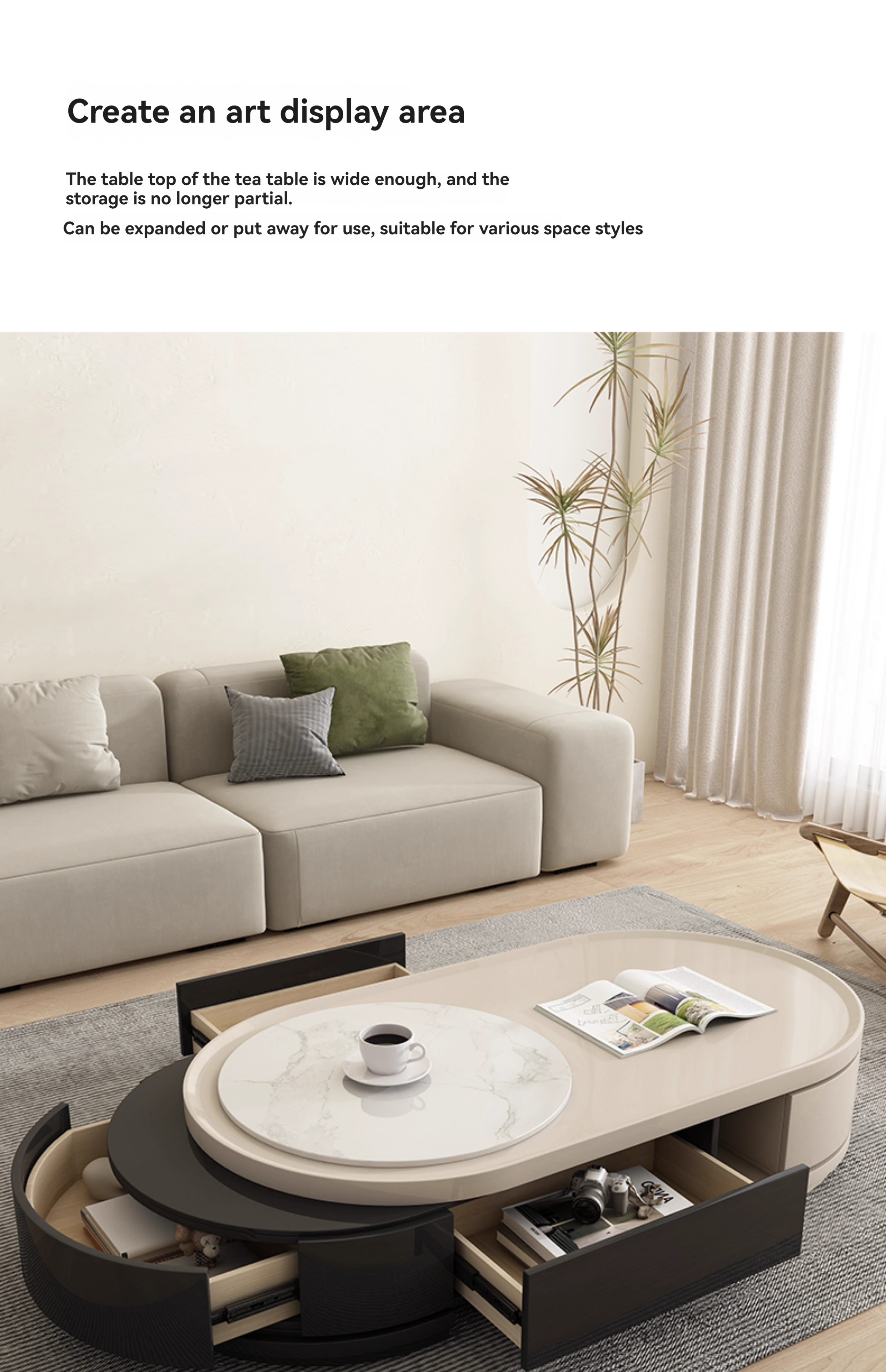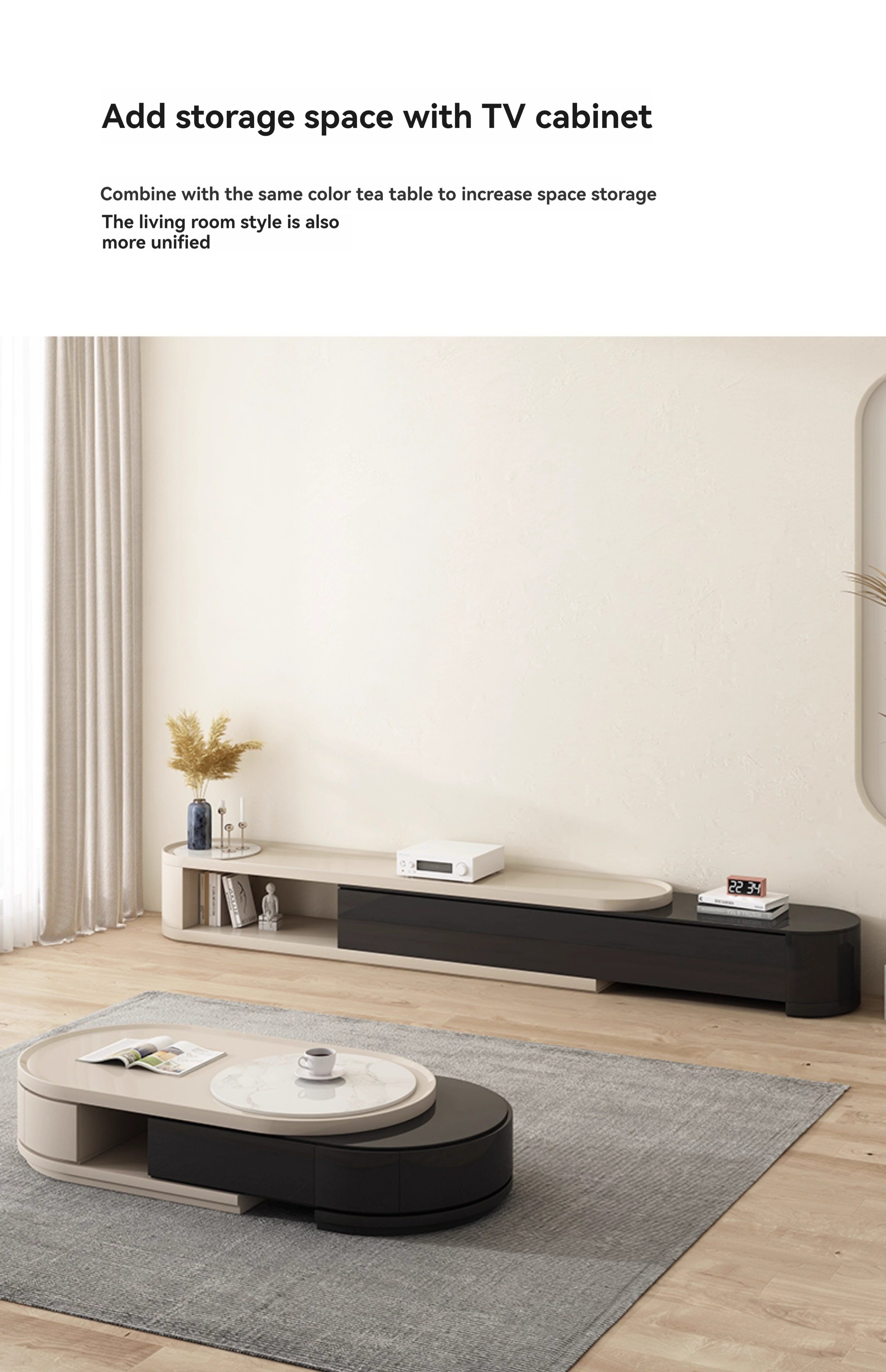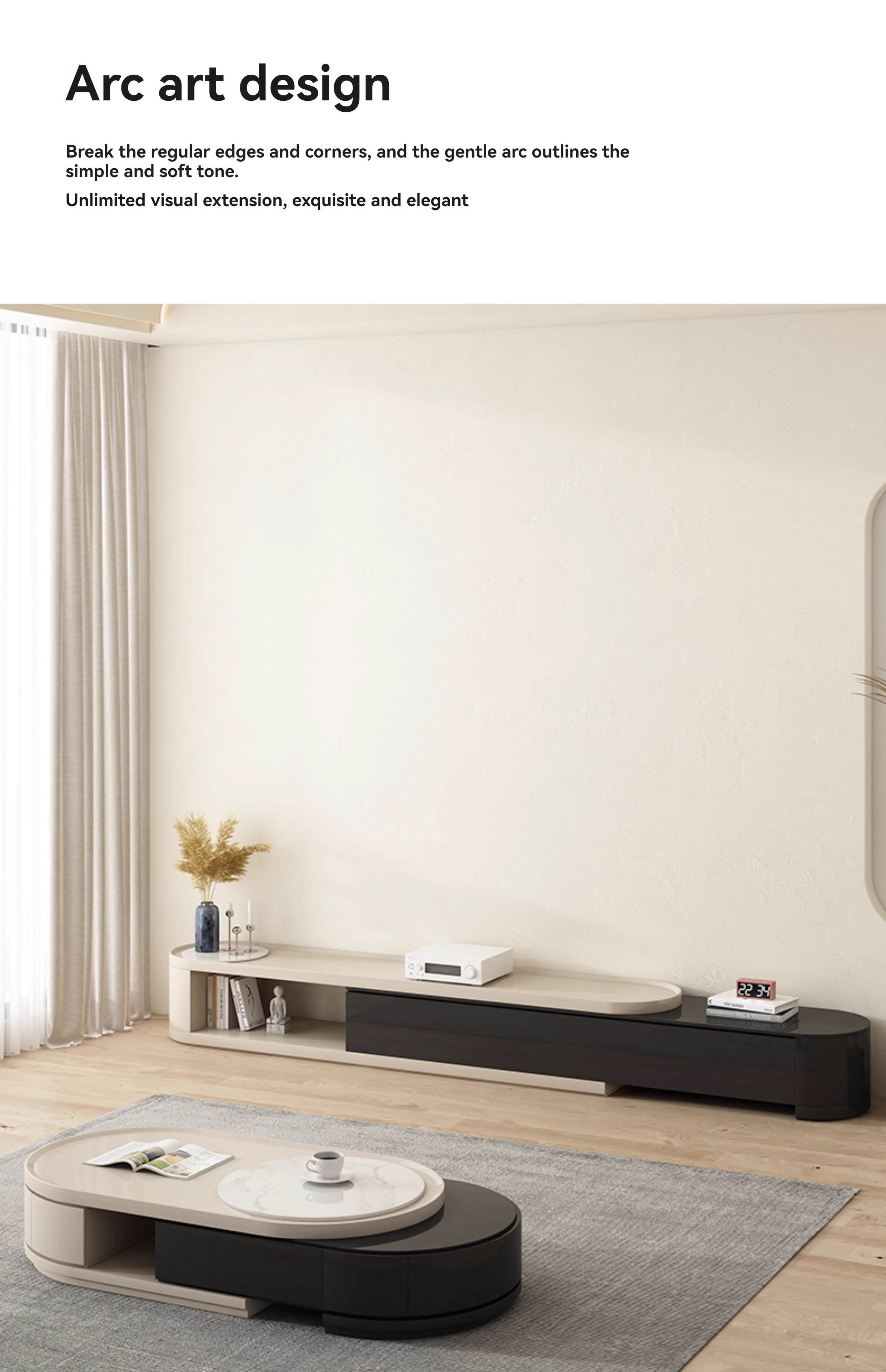 [Imported rock plate] Telescopic coffee table + telescopic TV cabinet