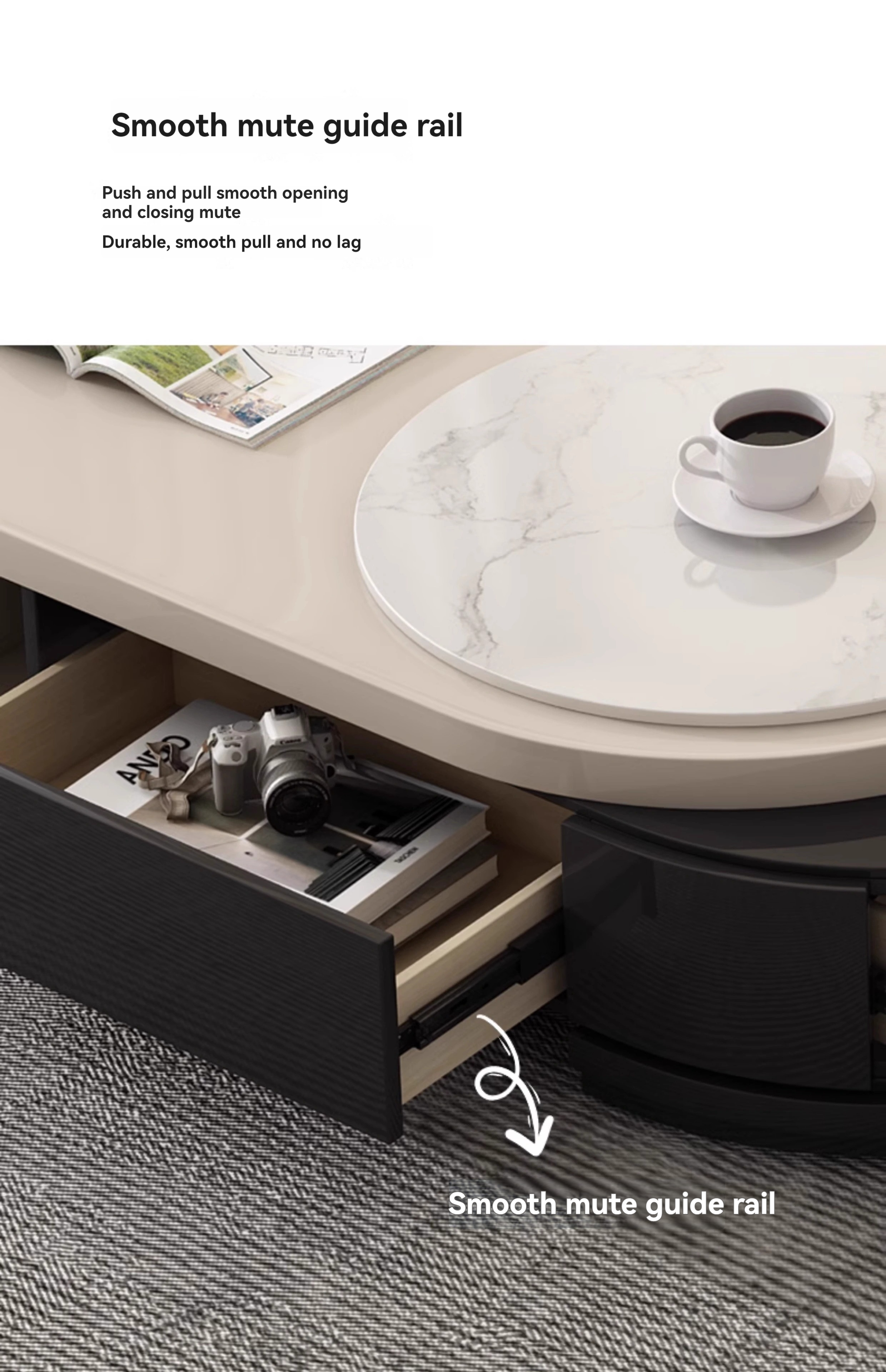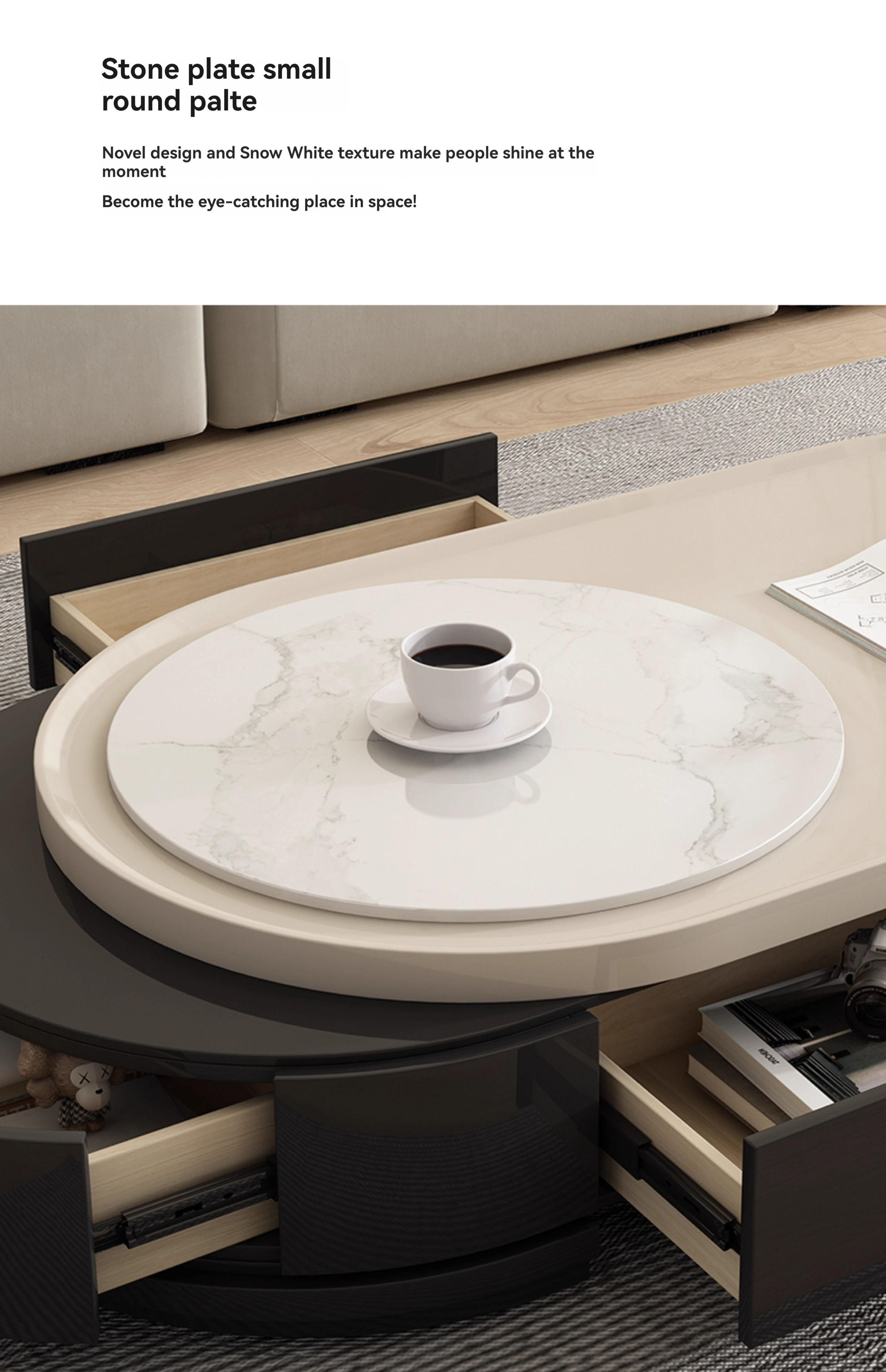 【 Imported rock plate 】 telescopic coffee table