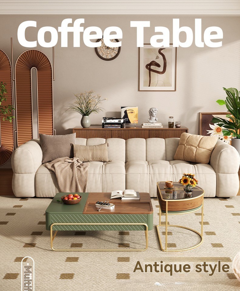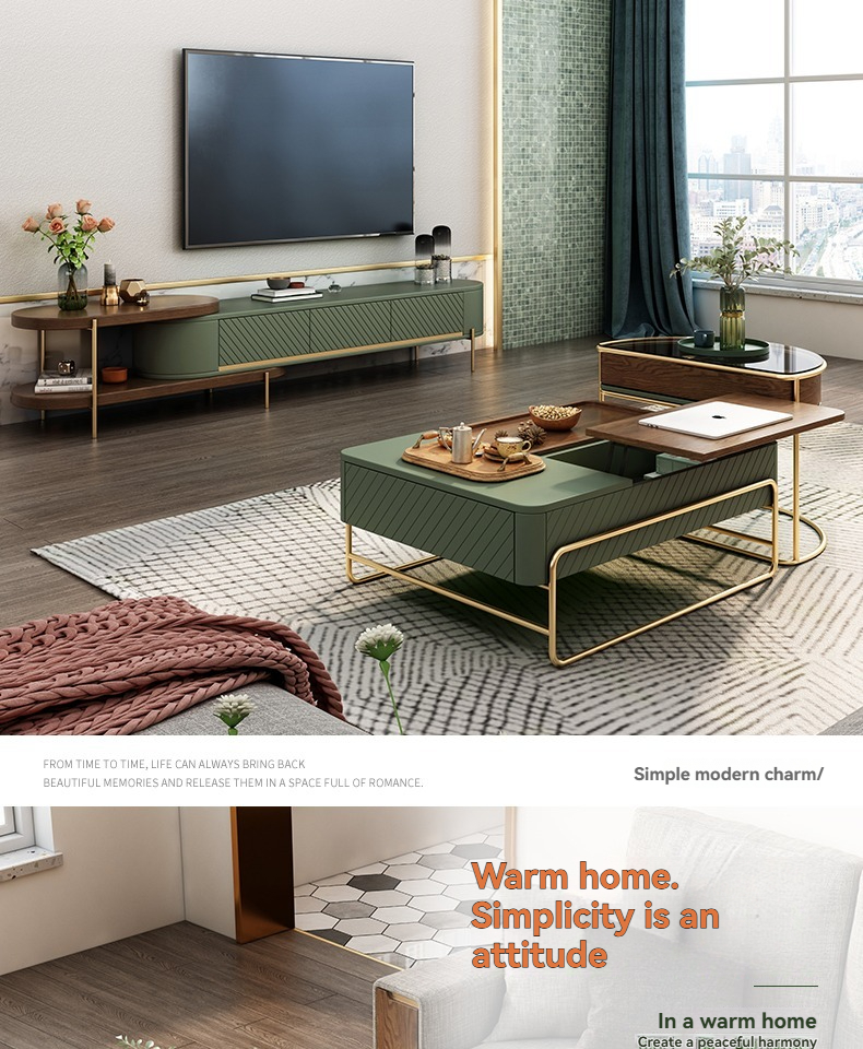 PRE-ORDER Light luxury hardware lifting coffee table TV cabinet combination home small apartment living room ancient style rock plate