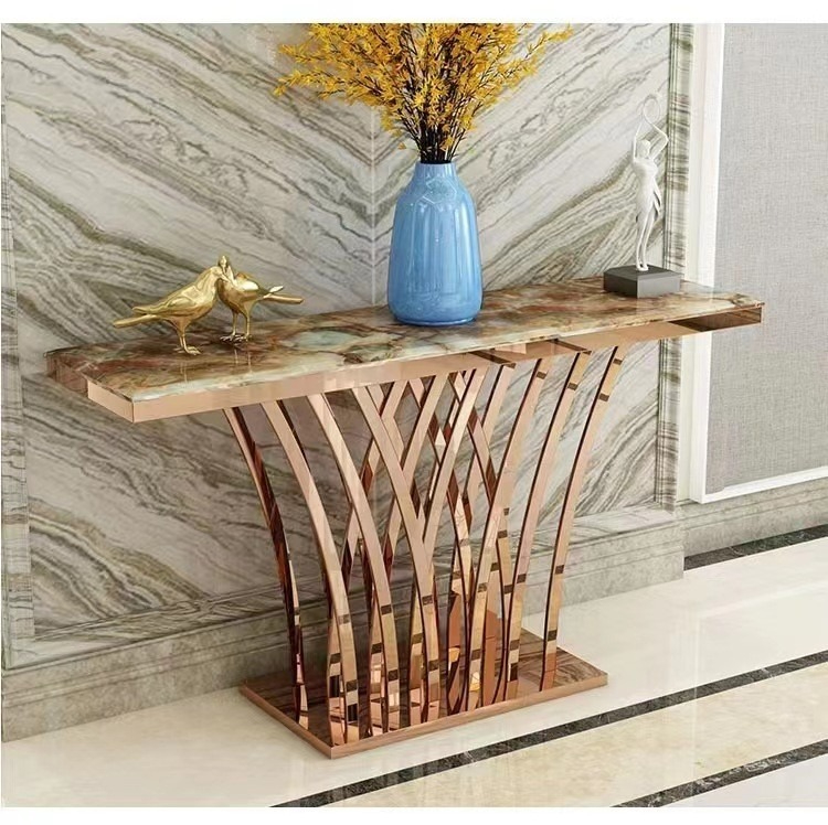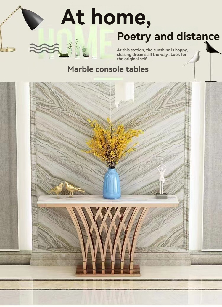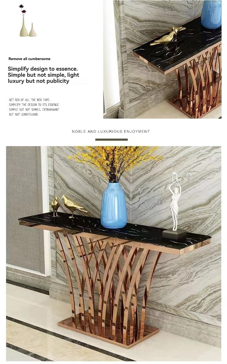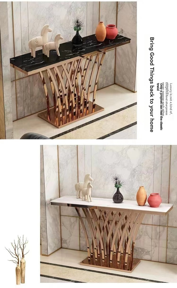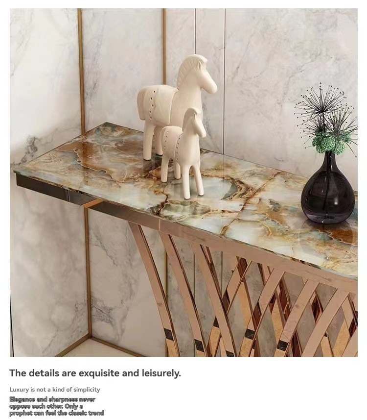 PRE-ORDER Nordic light luxury stainless steel marble console table entrance corridor PRE-ORDER Nordic light luxury stainless steel marble console table entrance corridor