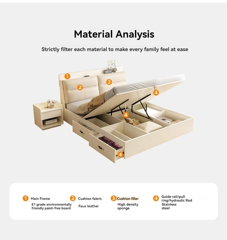 Wooden Moon Intelligent Storage Bed Modern and Simple High Box Bed Small Unit Provincial Space Bedroom Nordic Multifunctional Tatami-Smart-Living