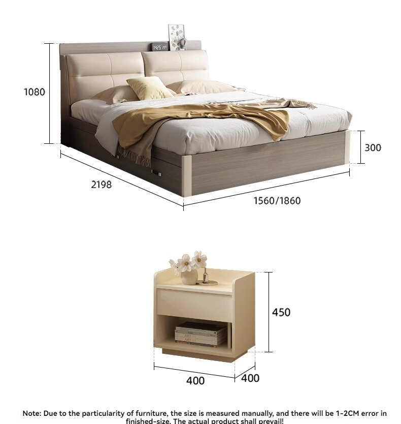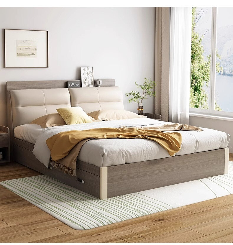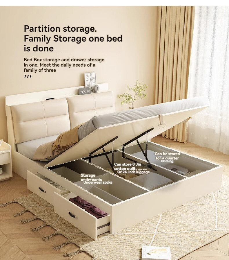Wooden Moon Intelligent Storage Bed Modern and Simple High Box Bed Small Unit Provincial Space Bedroom Nordic Multifunctional Tatami
