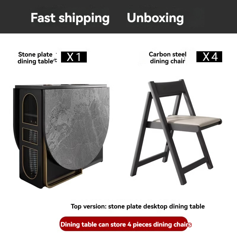 Solid wood folding dining table, integrated dining edge cabinet, small unit, light luxury style, multifunctional, movable dining rock board folding table-Smart-Living Solid wood folding dining table, integrated dining edge cabinet, small unit, light luxury style, multifunctional, movable dining rock board folding table-Smart-Living